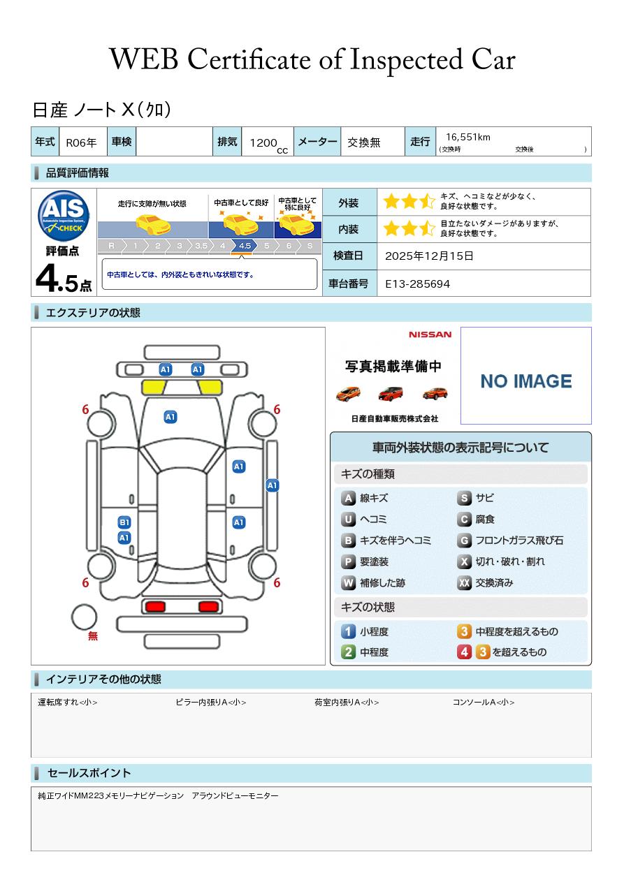 ノート 1200cc 1.2 X メモリ―ナビ・アラウンドビュ―モニター