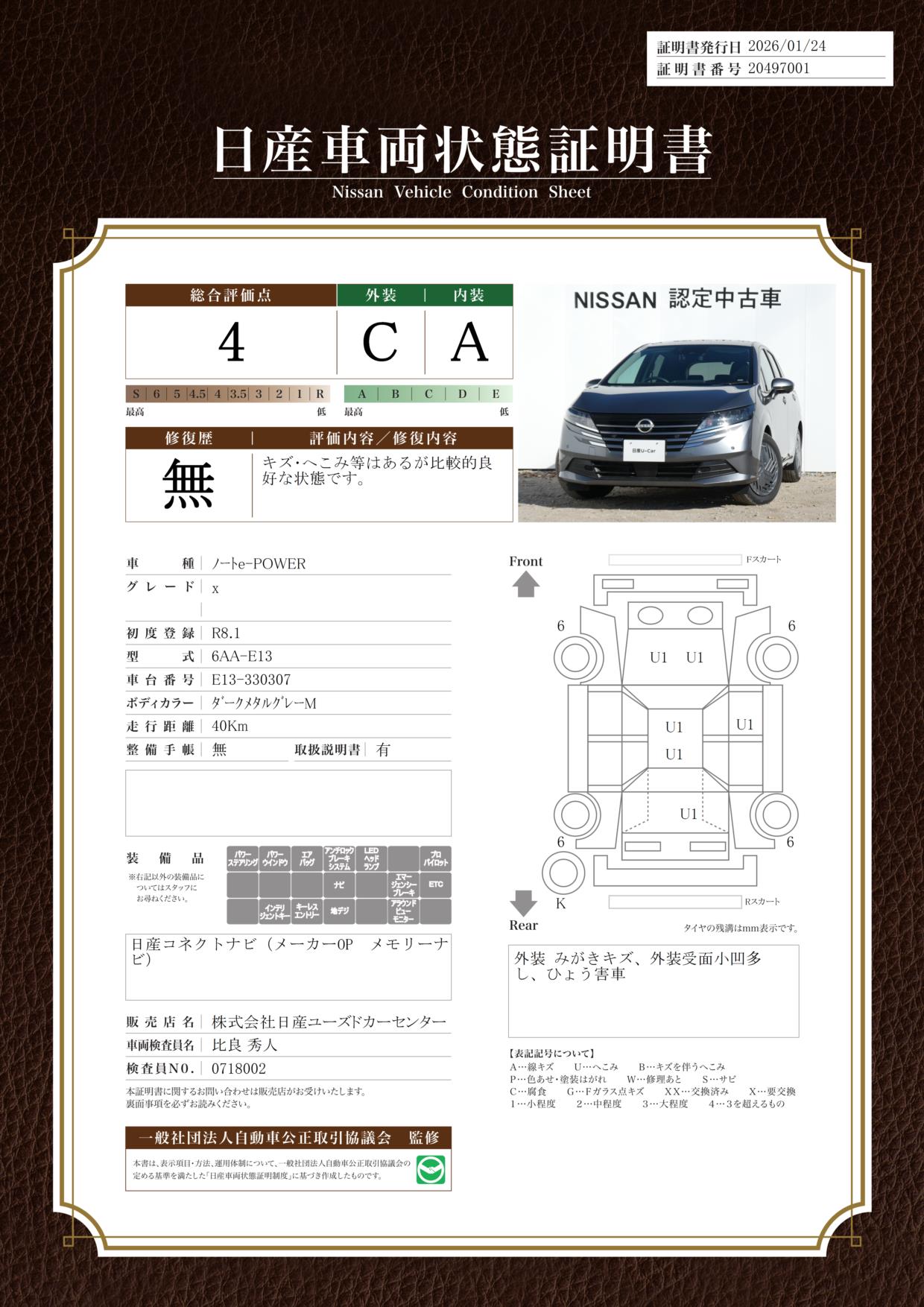 評価機関 : 日産車両状態証明