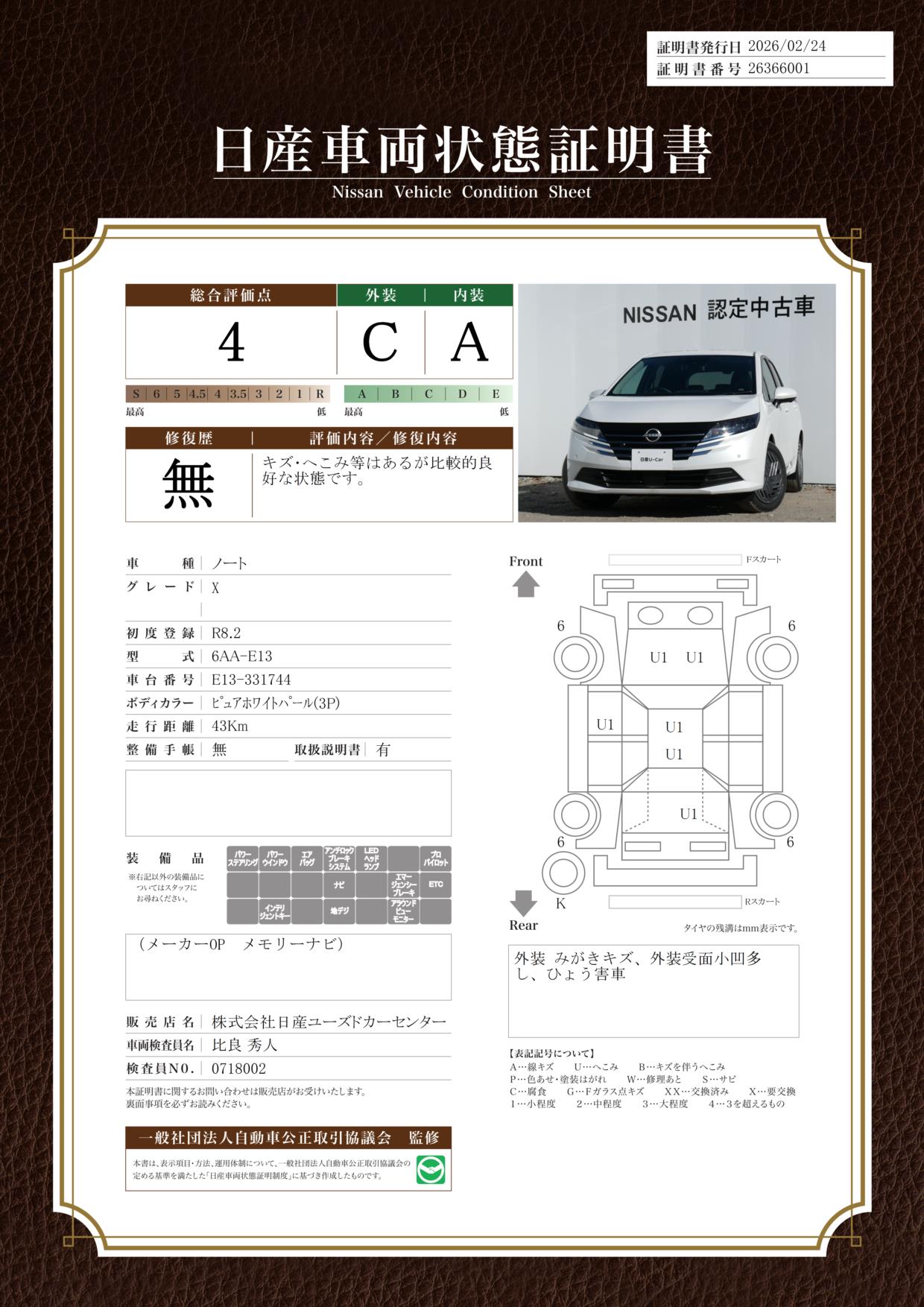 日産自動車認定の中古車販売店です。