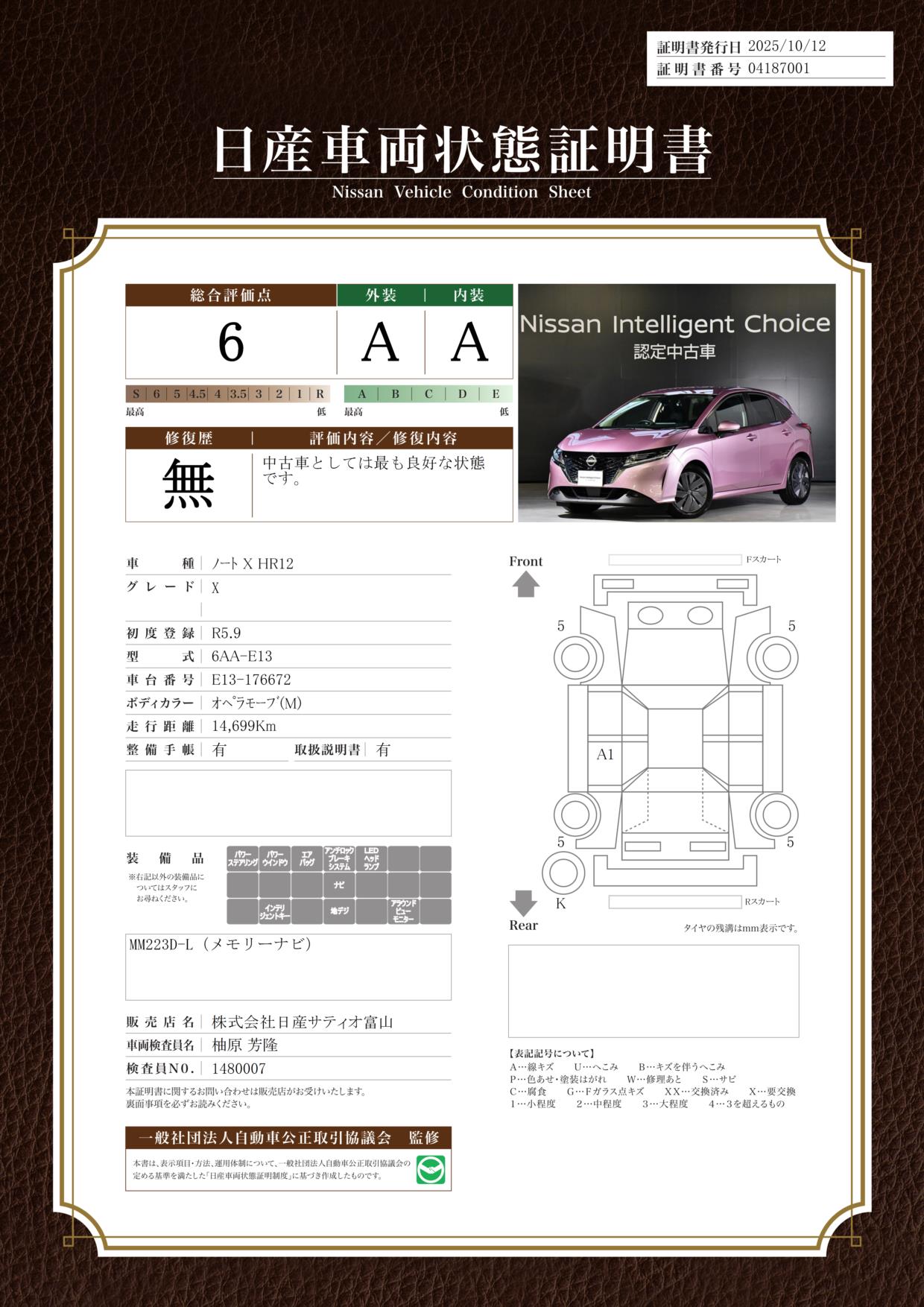 ノート 1200cc 1.2 e-POWER X 純正ナビドラレコETC