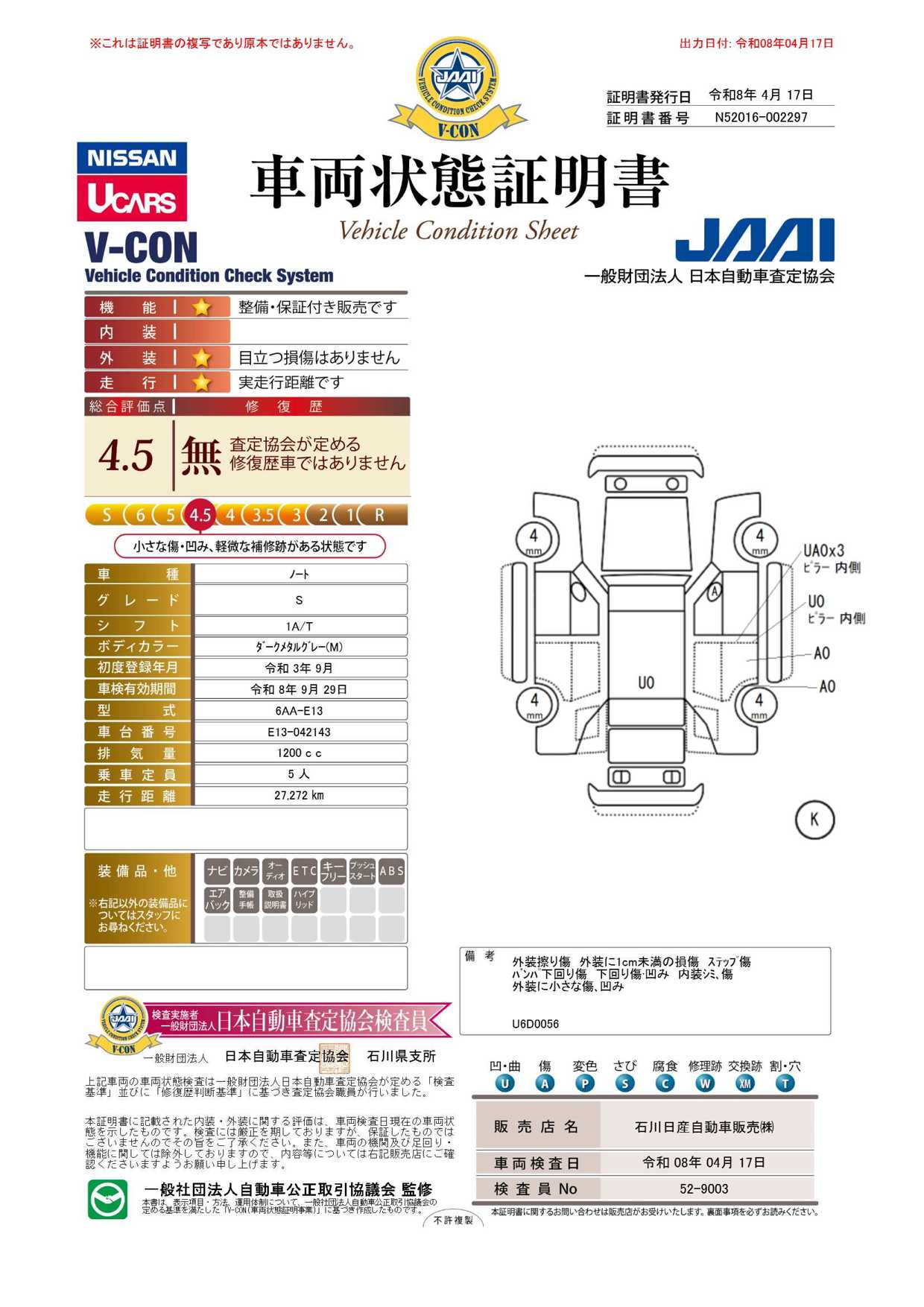 この度は石川日産UCARS小松の在庫を検索して頂き誠に有難う御座います。急速充電を備えておりますので電気自動車をご検討のお客様は一度、ご来店頂ければ充電方法を体験出来ます。当店では全国各地に販売実績がございますので、県内・県外問わず気になるお車があればお気軽にお問い合わせください。 ディーラーリースを始めました!個人様、法人様どなたでも大歓迎です。ぜひお気軽にお声掛けください! https://u-sub.nissan.co.jp/ ← こちらはリース車両専用サイトです♪