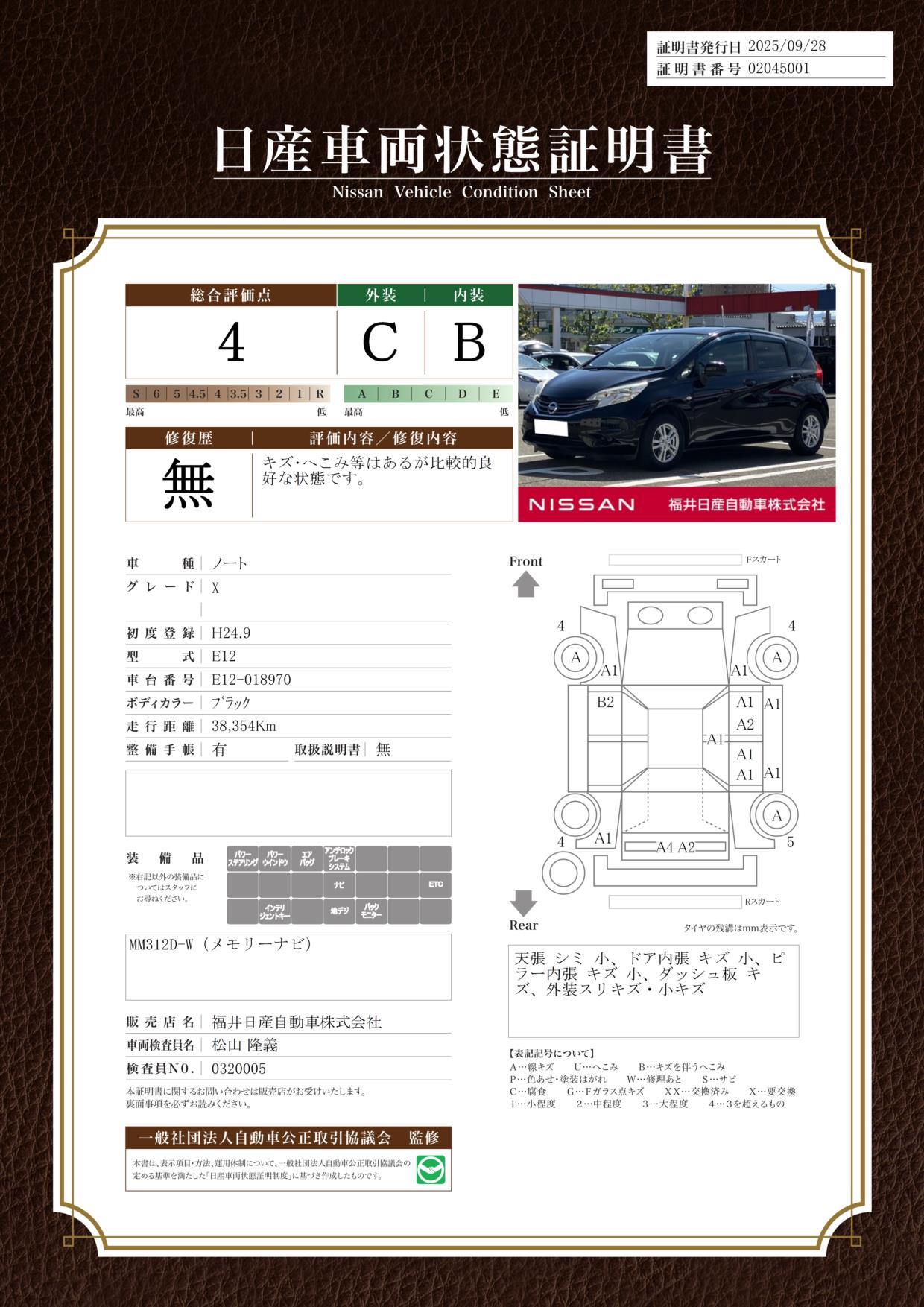 ノート 1200cc 1.2 X メモリーナビ・バックカメラ・前後ドラレコ