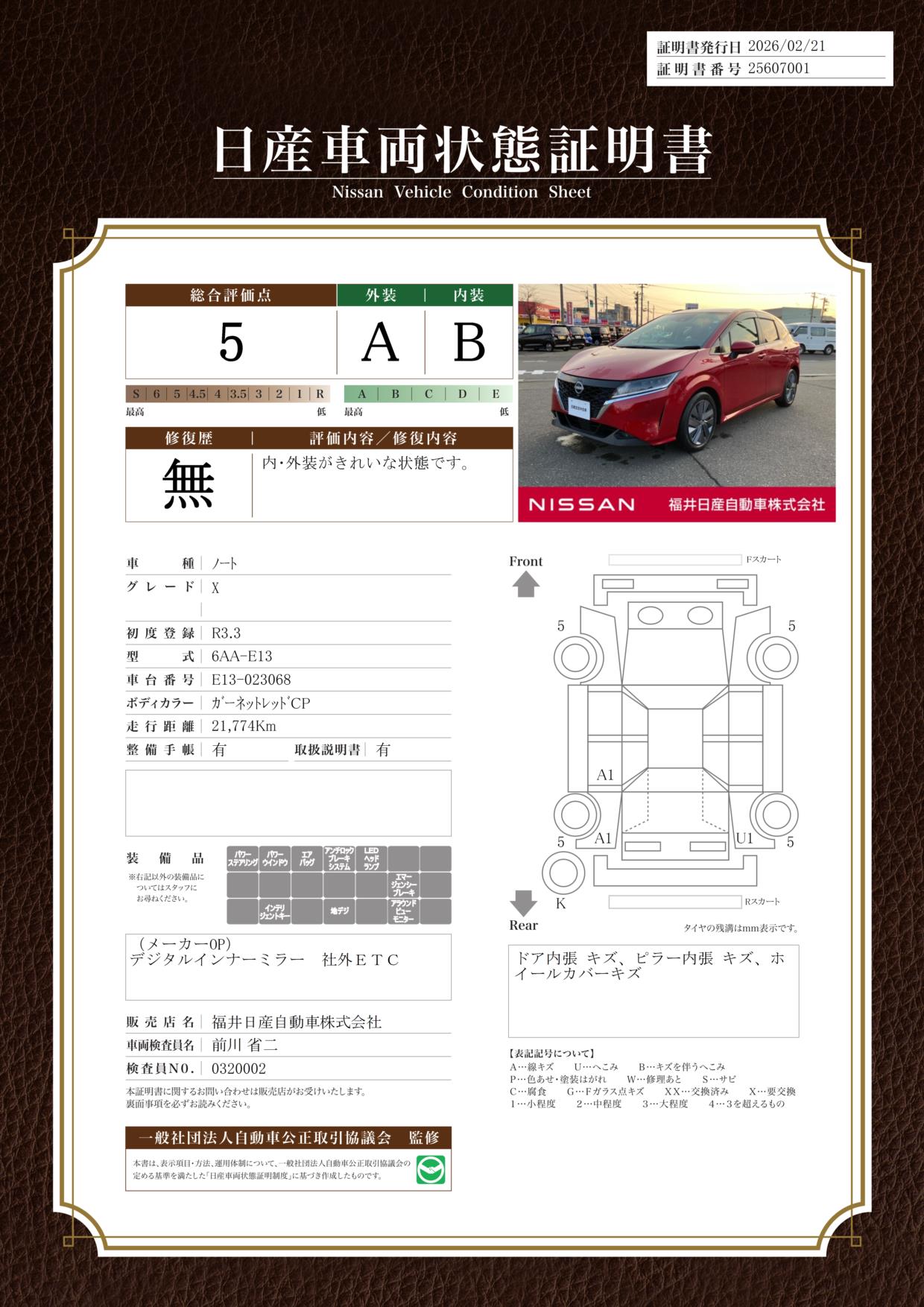 ノート 1200cc 1.2 e-POWER X メモリーナビ・アラウンドビュー・ETC