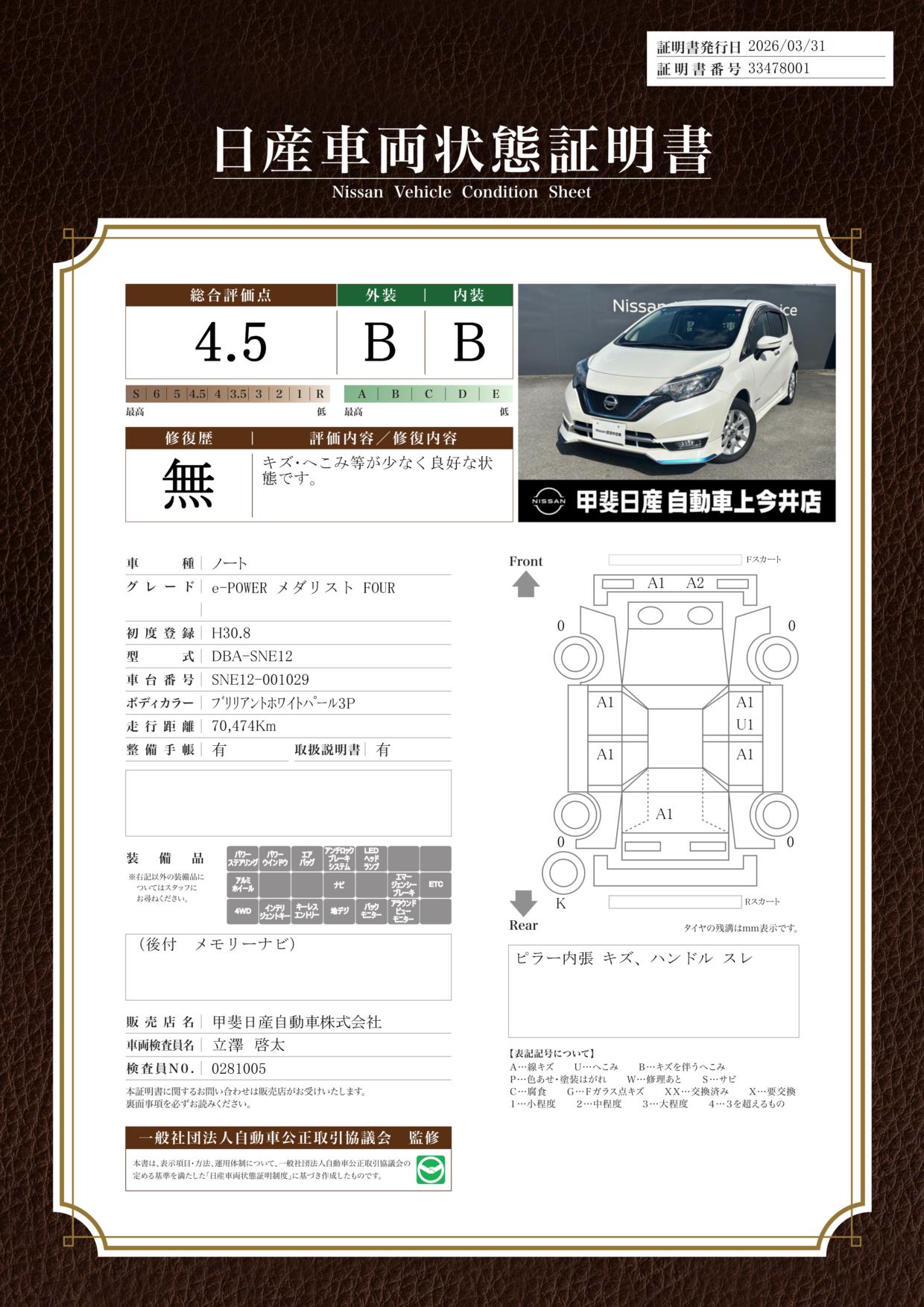 こちらのクルマは 「日産認定中古車」。 だから、4つの安心をお約束。