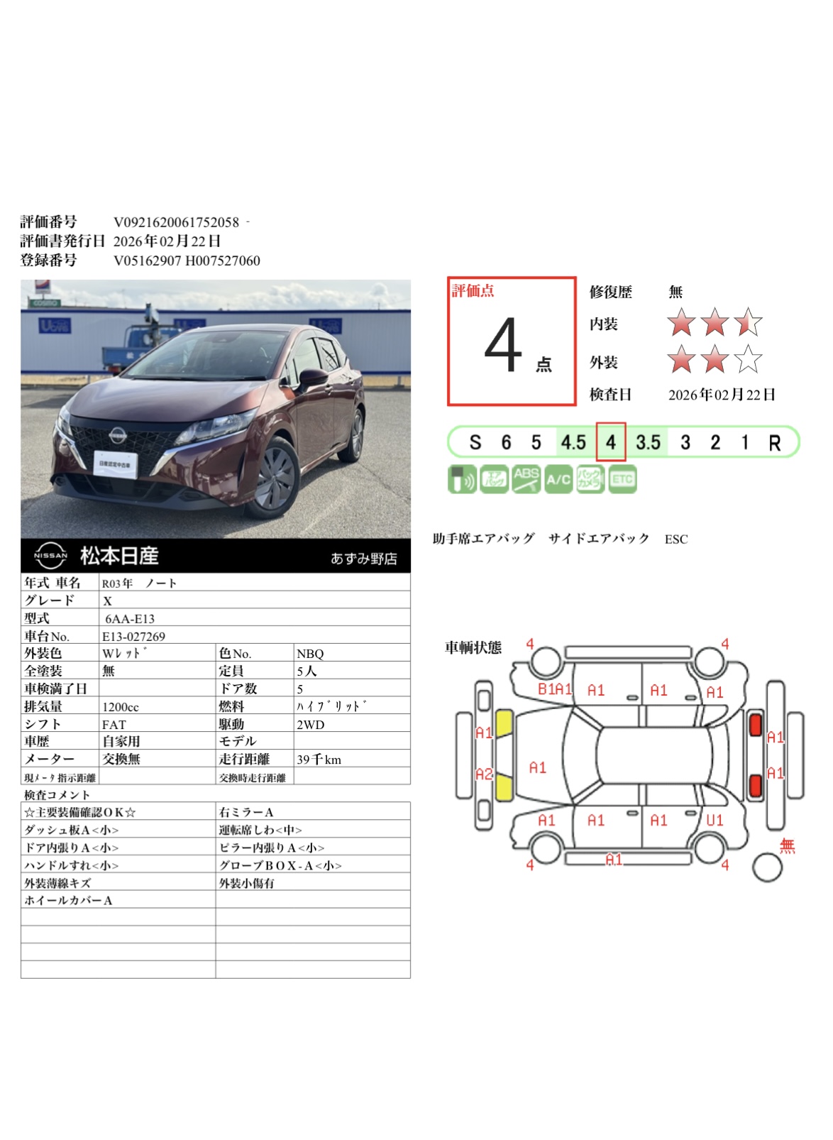 現状括弧書き内の年月まで車検有効期限が残っていますが、ご成約時に新しく車検を取り直します。なお取り直しの費用は車両価格に含まれています。