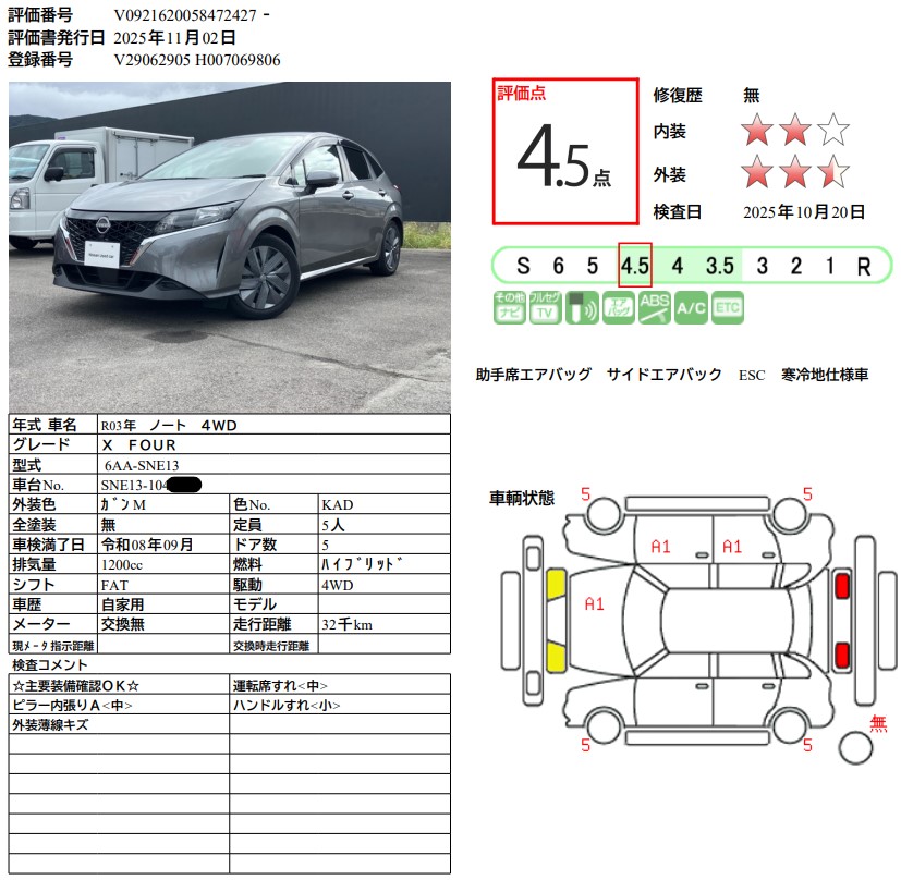 ノート 1200cc 1.2 X FOUR 4WD ナビ 全周囲モニター ドライブレコーダー