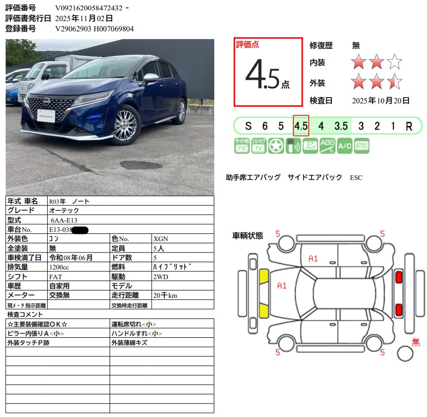 ノート 1200cc 1.2 X 衝突軽減ブレーキ AVM LED ETC