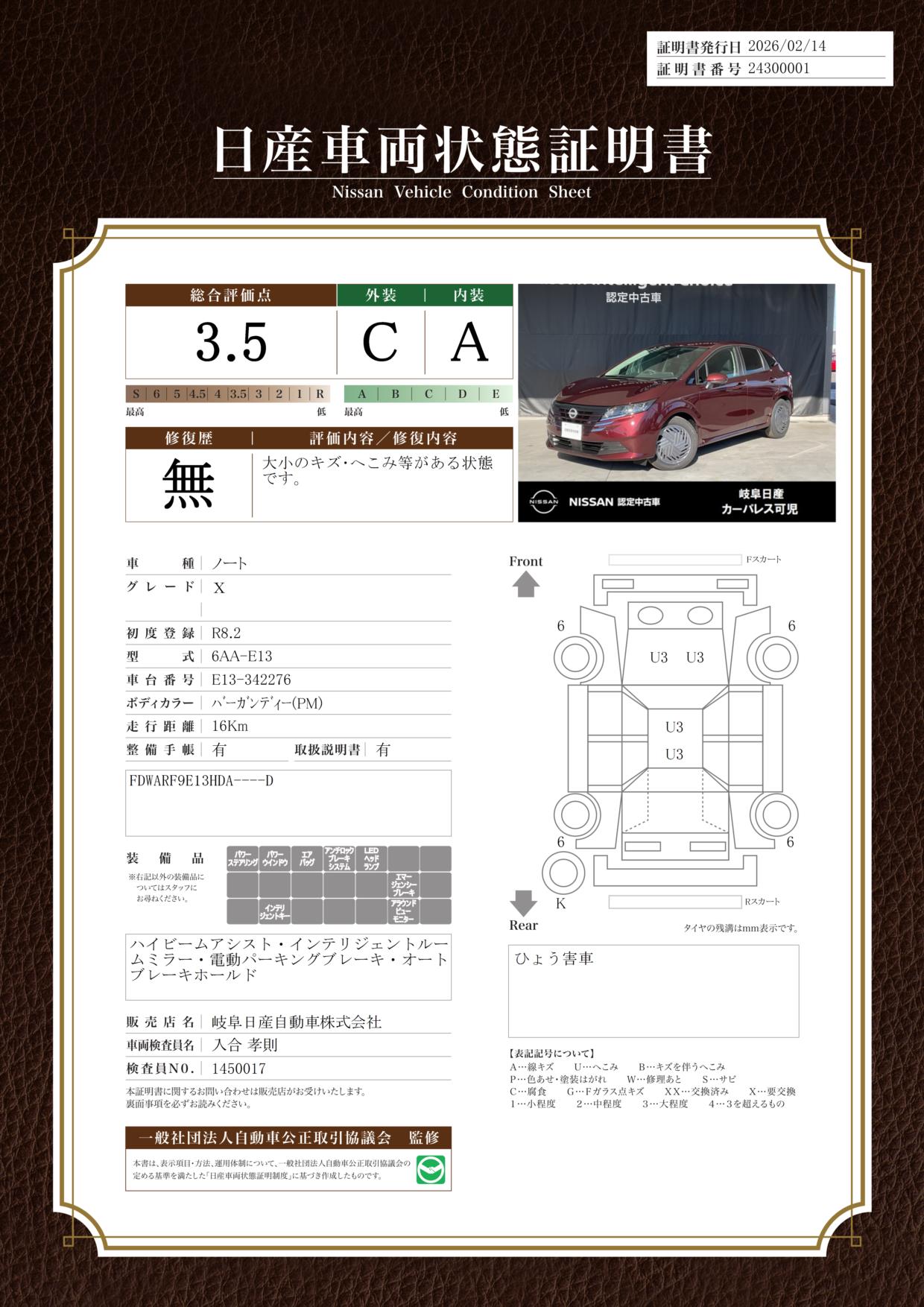 こちらの車両は、ひょう害車となります。軽微な凹みが複数有ります。走行に問題はありません。店頭にて現車の状態を必ず確認していただいてからの、販売となります。