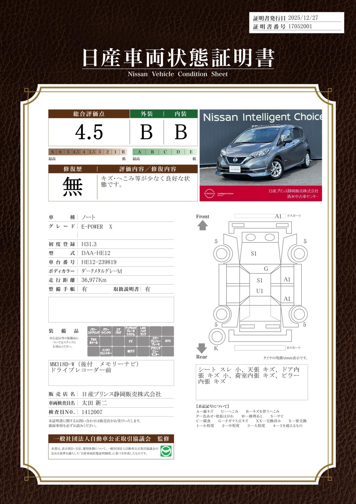 日産自動車認定の中古車販売店です。