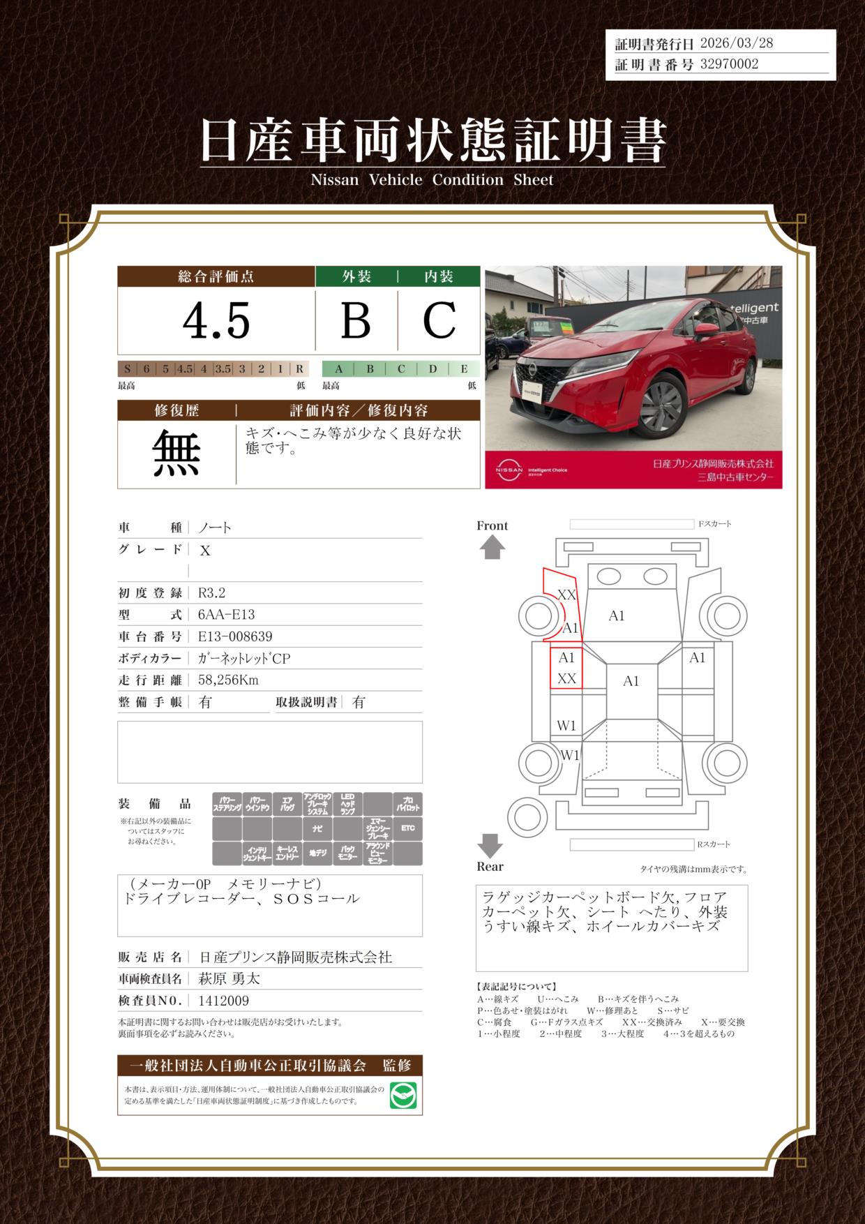 日産ノート入荷しました★前後ドライブレコーダー★アラウンドビューモニター★インテリジェントキー★メモリーナビ★