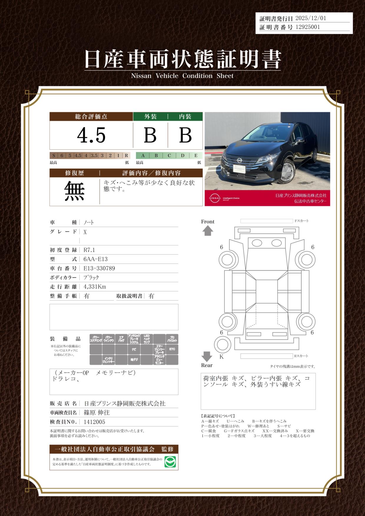 ノート 1200cc 1.2 X ドラレコ・ETC・アラウンドビューモニター