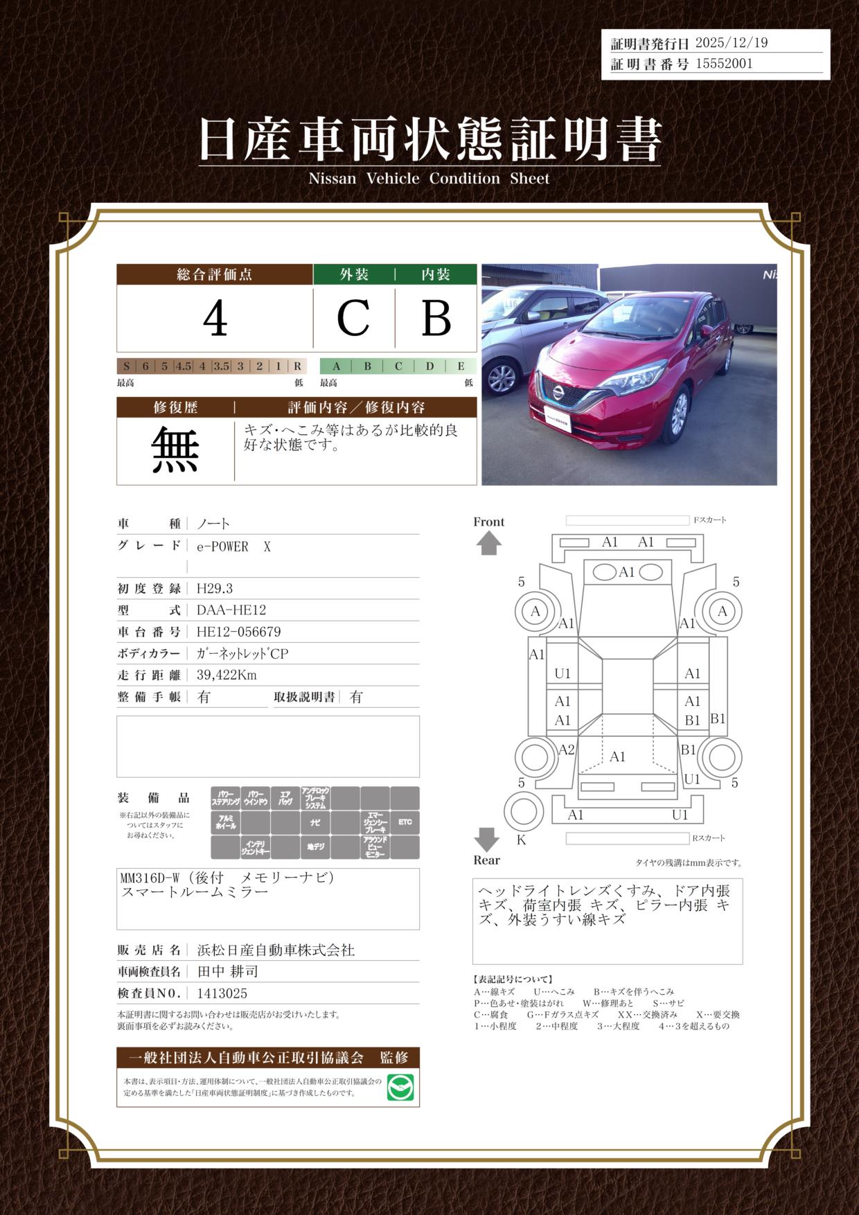 ノート 1200cc 1.2 e-POWER X 純正ナビ 被害軽減ブレーキ