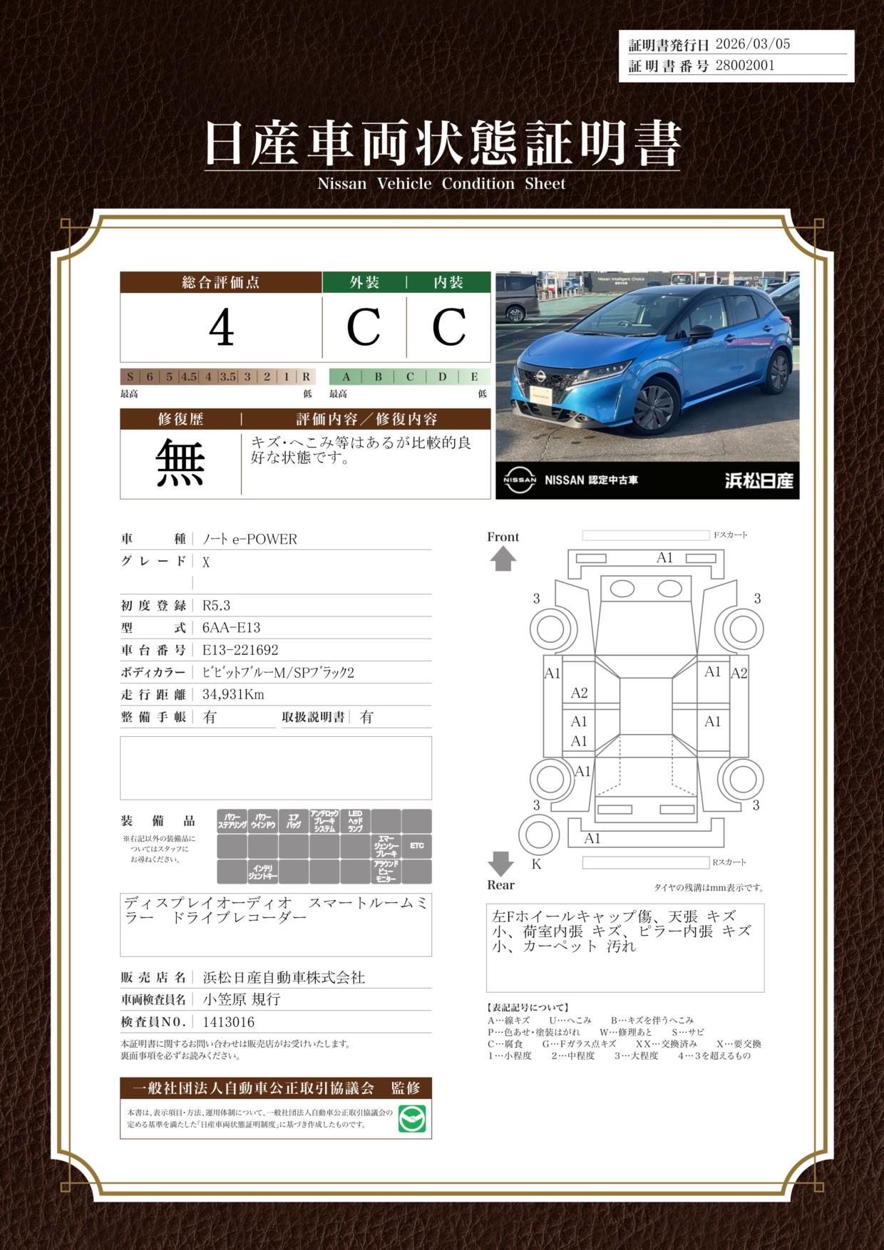 日産中古車検索サイトをご覧頂きありがとうございます。お店は東名浜松インターすぐ近く!遠方からお越しの方もアクセス良いお店です。電車でお越しの方はJR天竜川駅まで送迎も致します。!今話題のノートePOWER,軽デイズからセダン、コンパクトカーを揃えて皆様のお越しをお待ち申し上げてます。ノートePOWER試乗体感できます。是非一度お立ち寄り下さい。新車販売も致します。中古車残価クレジットで月々楽な金額で購入可能です。