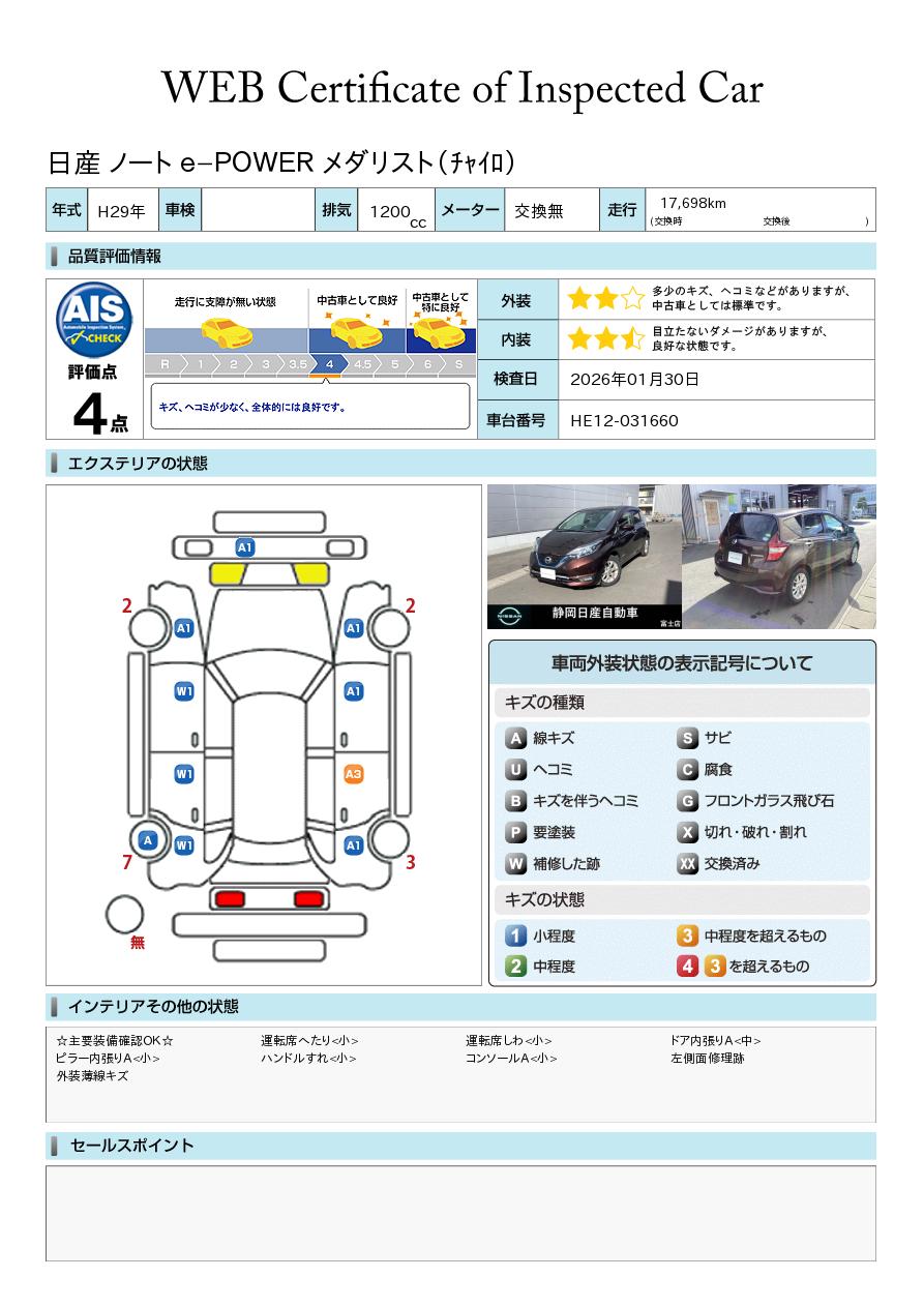 ノート 1200cc 1.2 e-POWER メダリスト 純正アルミ 社外ナビ LEDヘッドライト
