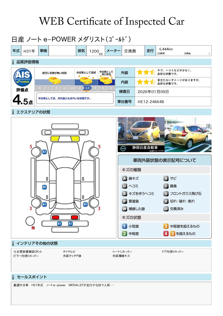 厳選中古車 H31年式 ノートe-power MEDALSTが走行少な目で入荷・・・メモリーナビ 地デジTV アラウンドビューモニター クルーズコントロール プレミアムホワイトインテリア