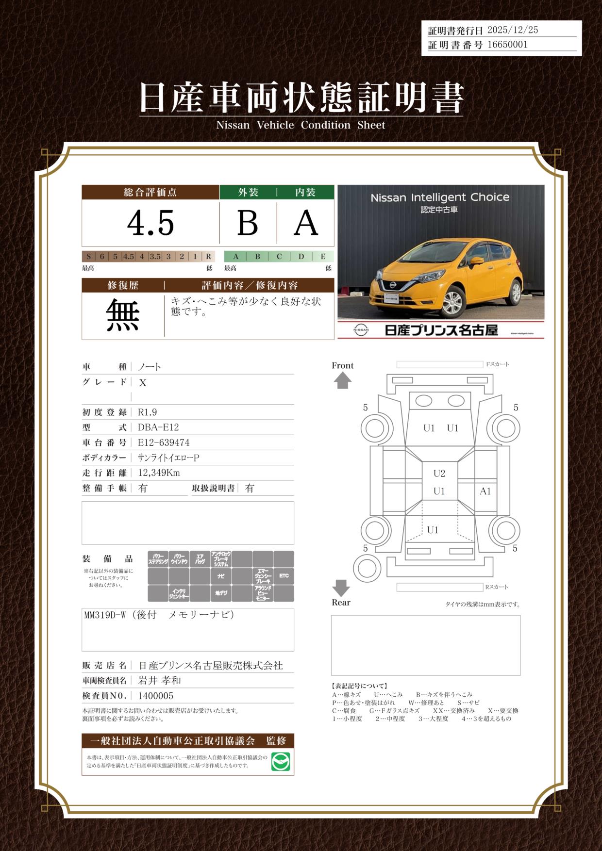 日産自動車認定の中古車販売店です。