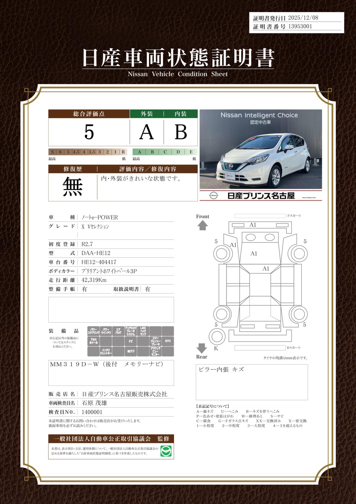 日産自動車認定の中古車販売店です。