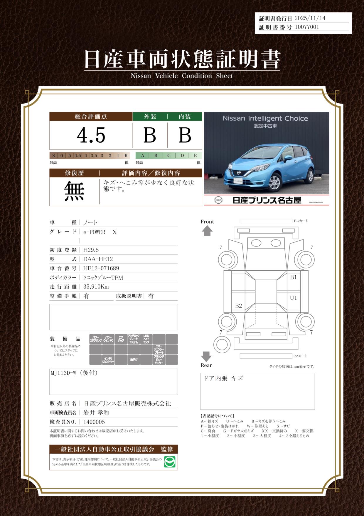 現状括弧書き内の年月まで車検有効期限が残っていますが、ご成約時に新しく車検を取り直します。なお取り直しの費用は車両価格に含まれています。