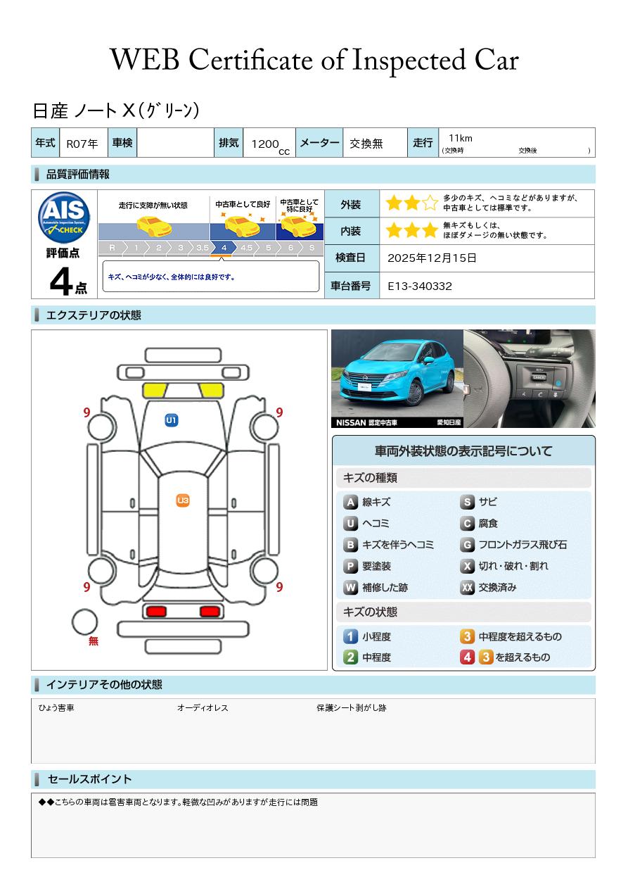 ノート 1200cc 1.2 X ※雹害車 スマートミラー 全周囲カメラ