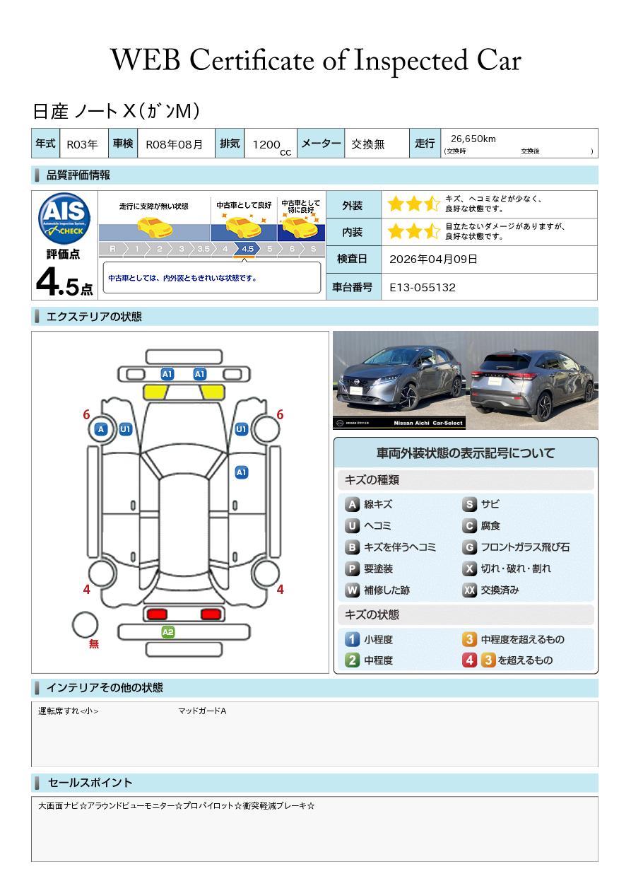 「車両状態証明書」は、査定協会監修のプロの検査員が公正かつ確かな基準で検査した”安心の証”です。