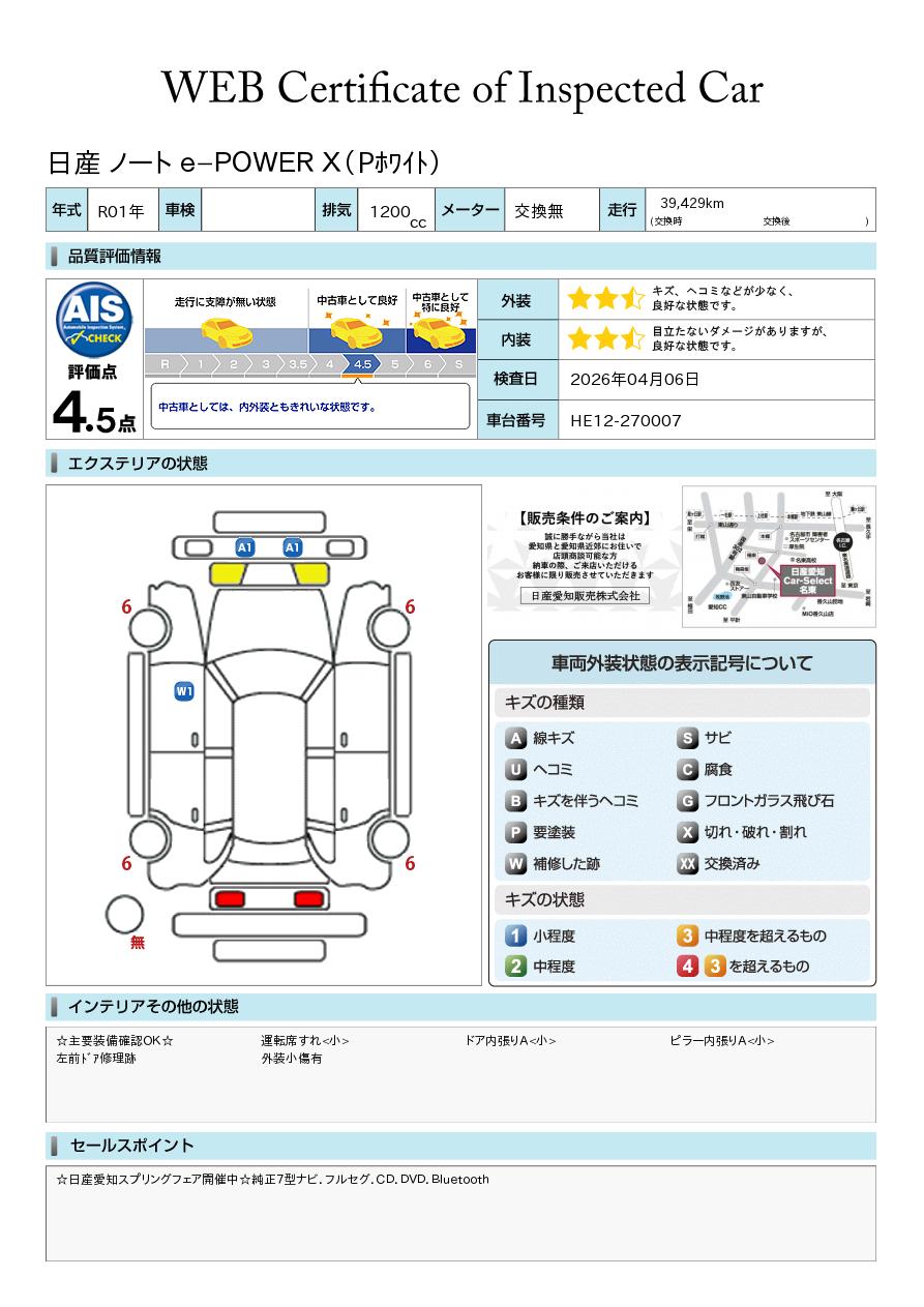 現状括弧書き内の年月まで車検有効期限が残っていますが、ご成約時に新しく車検を取り直します。なお取り直しの費用は車両価格に含まれています。