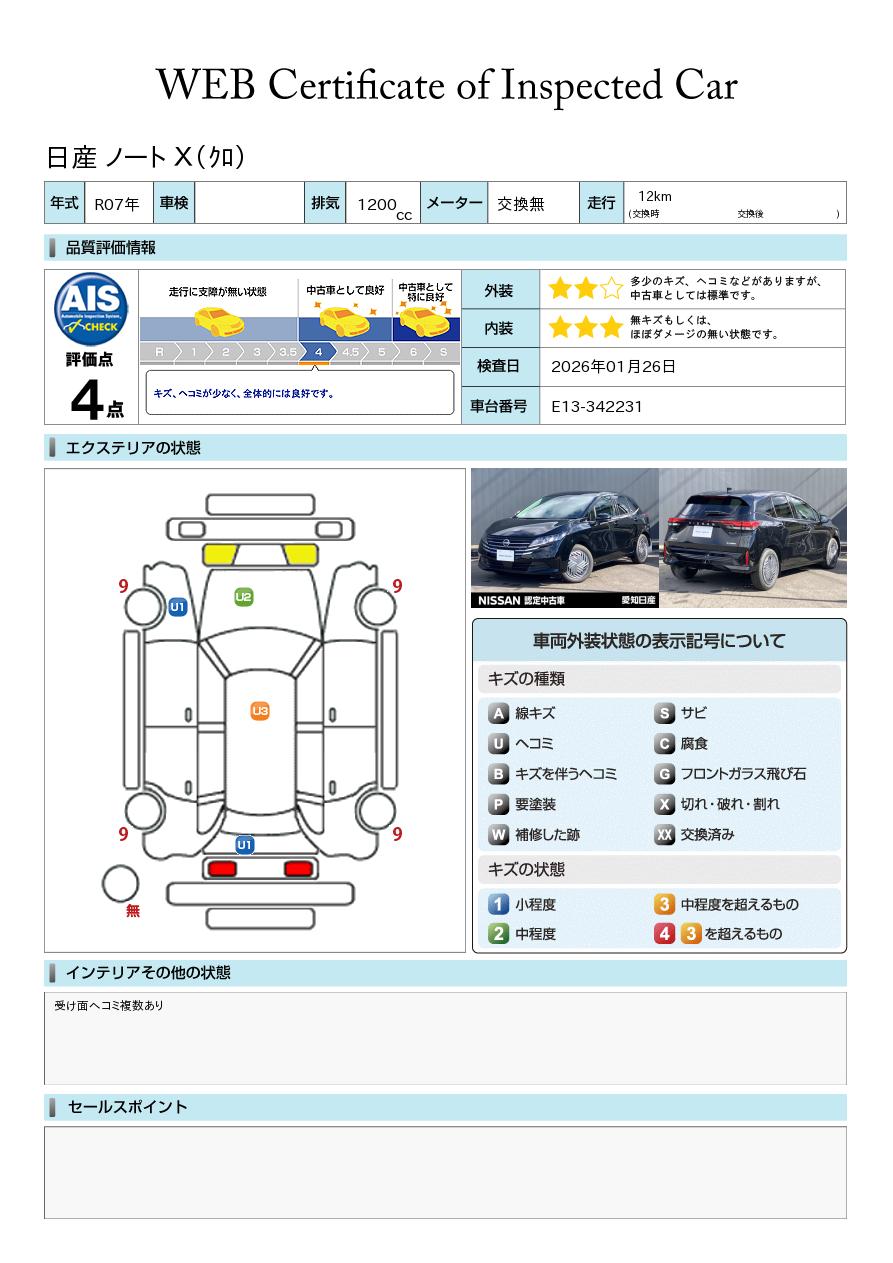 ◆こちらのノートは【雹害車】となります◆【車検整備付】◆安心の【1年間走行距離無制限のワイド保証】付きです!新車保証の継承はございません◆