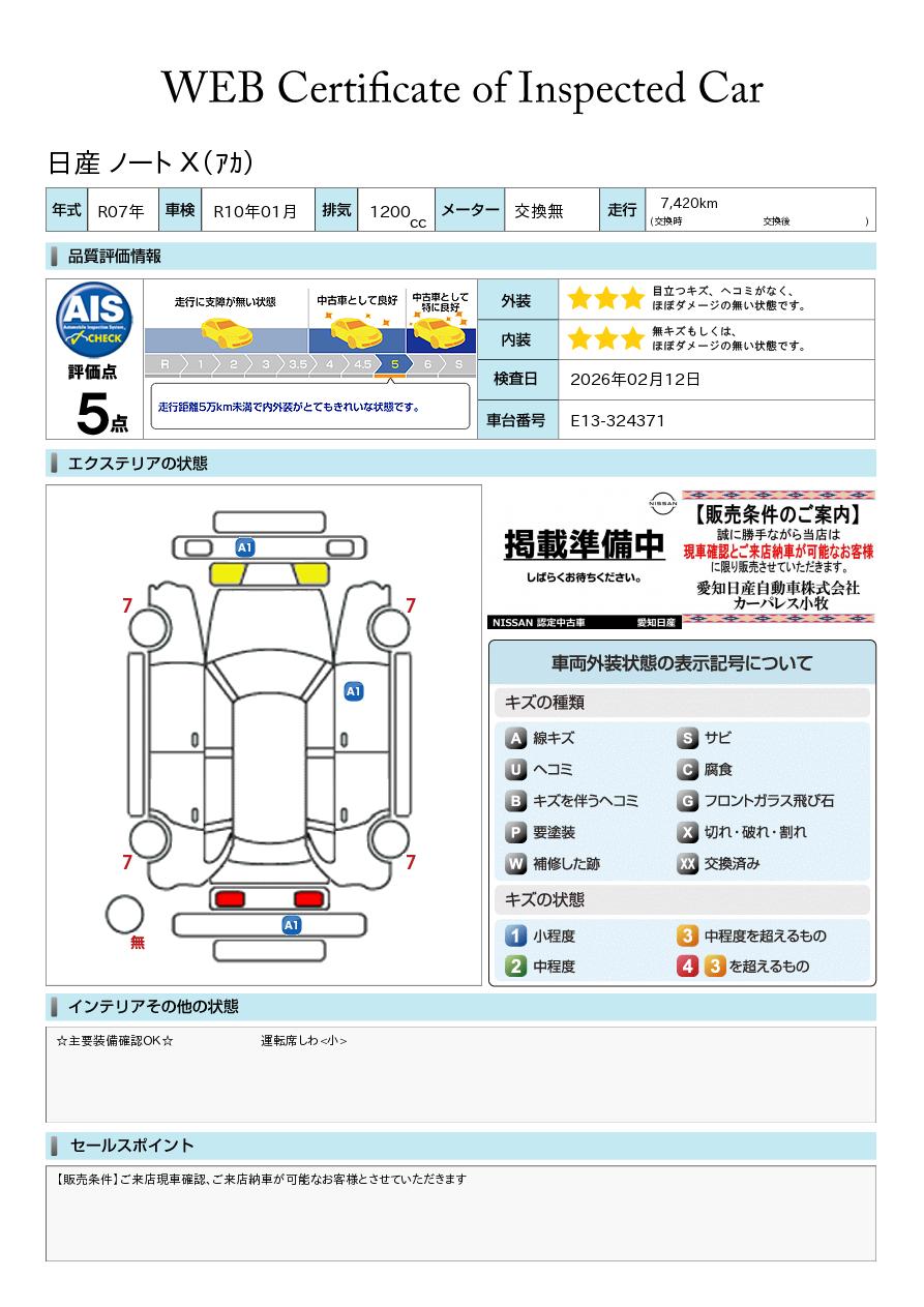 現状括弧書き内の年月まで車検有効期限が残っていますが、ご成約時に新しく車検を取り直します。なお取り直しの費用は車両価格に含まれています。