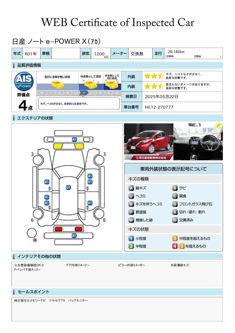 ノート 1200cc 1.2 e-POWER X 純正ナビ 全方位カメラ