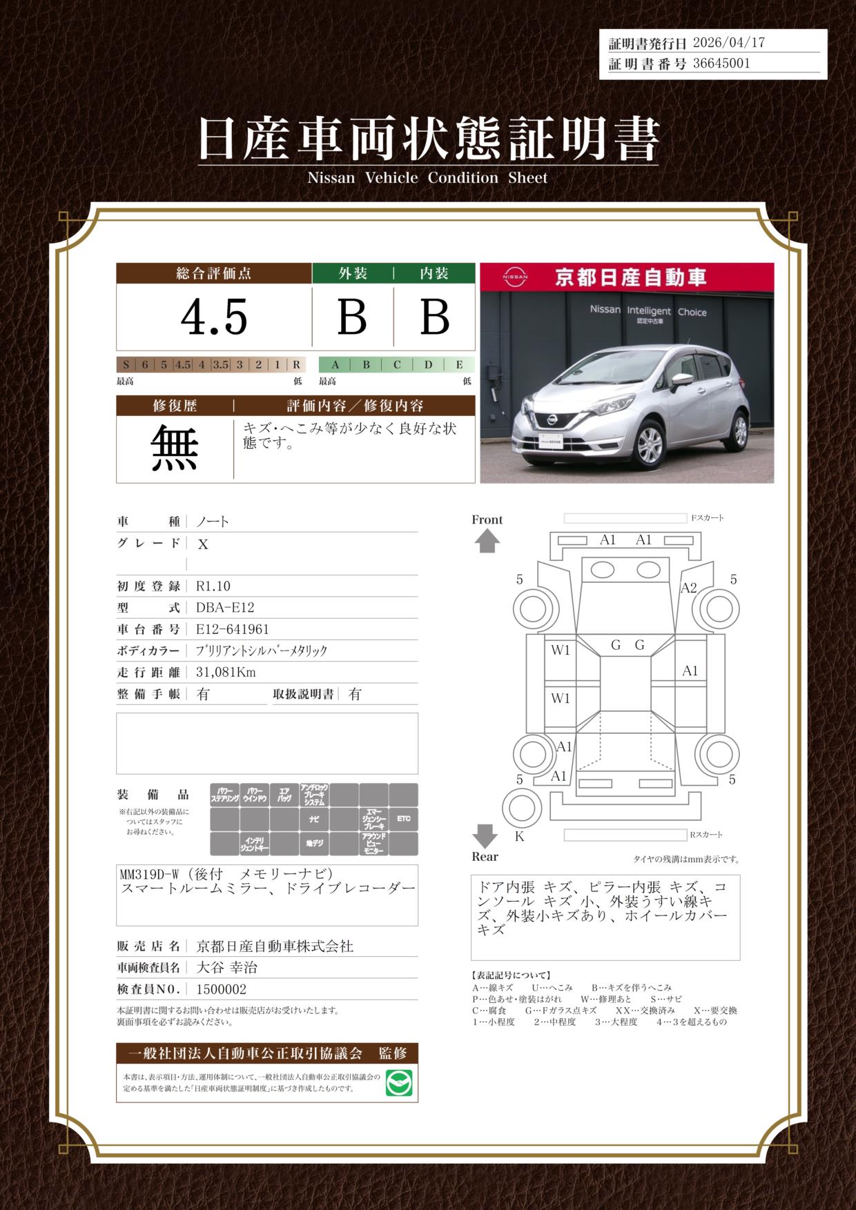 純正ナビ全方位カメラドラレコETCワンオーナー当店では、ご安心頂く為に、ご来店頂きお車のご確認をおススメしております。