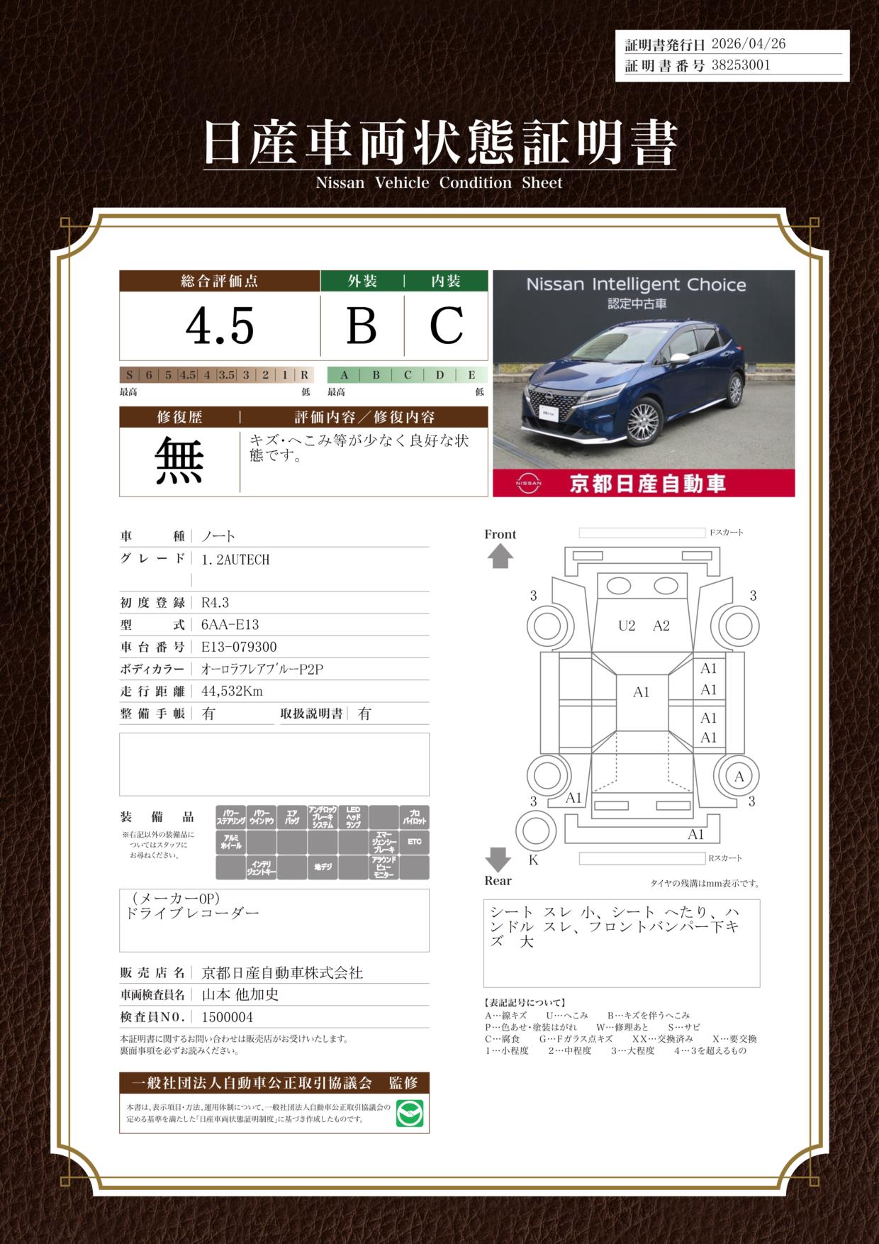 ノート1.2 AUTECH アラウンドビューモニター・ドライブレコー