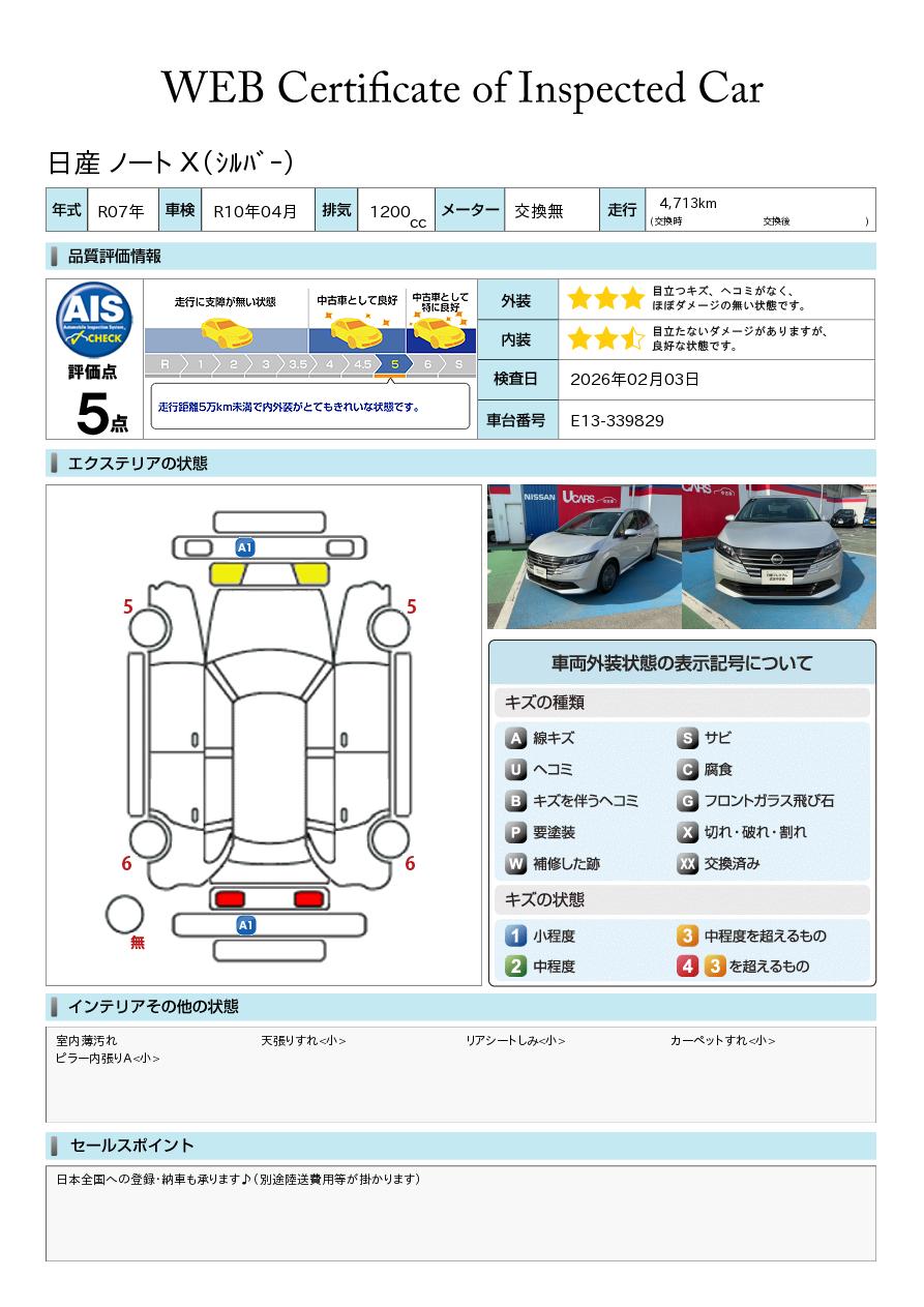 ノート 1200cc 1.2 X 試乗車アップ車両 元社用車