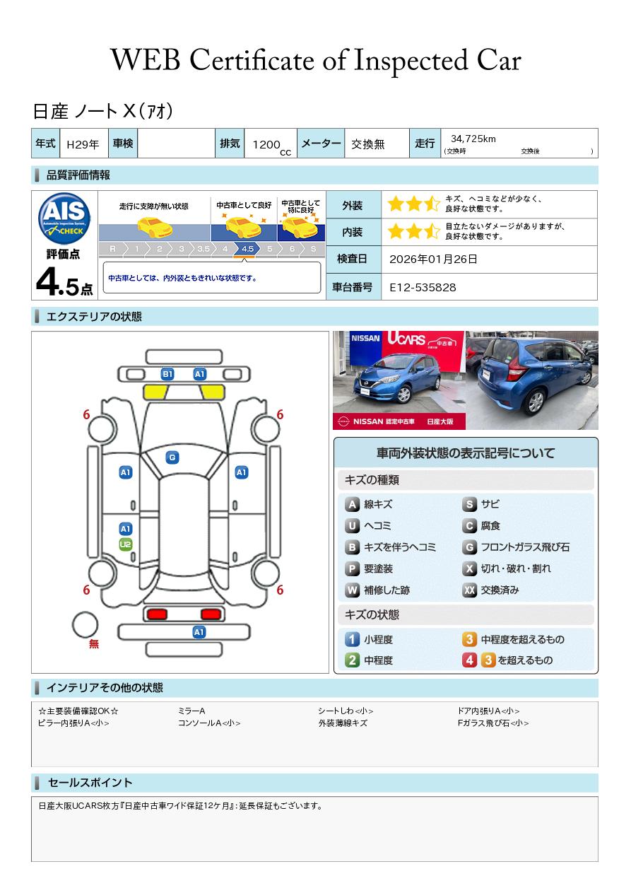 日産大阪UCARS摂津『日産中古車ワイド保証12ケ月』:延長保証もございます。エマブレ・前後踏間違防止・車線逸脱警報・アラウンドモニタ&ナビTV・ETC・スマートミラー・前ドラレコ
