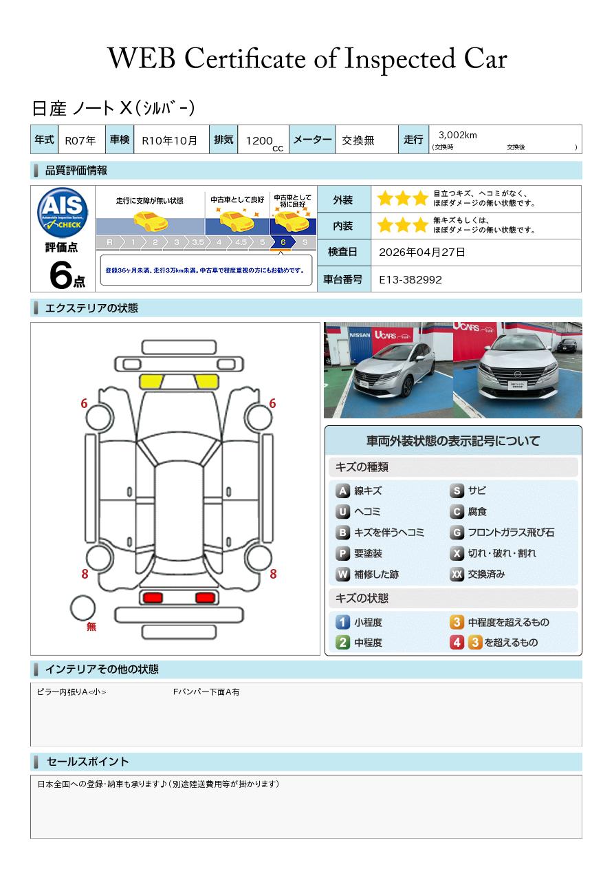 「車両状態証明書」は、査定協会監修のプロの検査員が公正かつ確かな基準で検査した”安心の証”です。