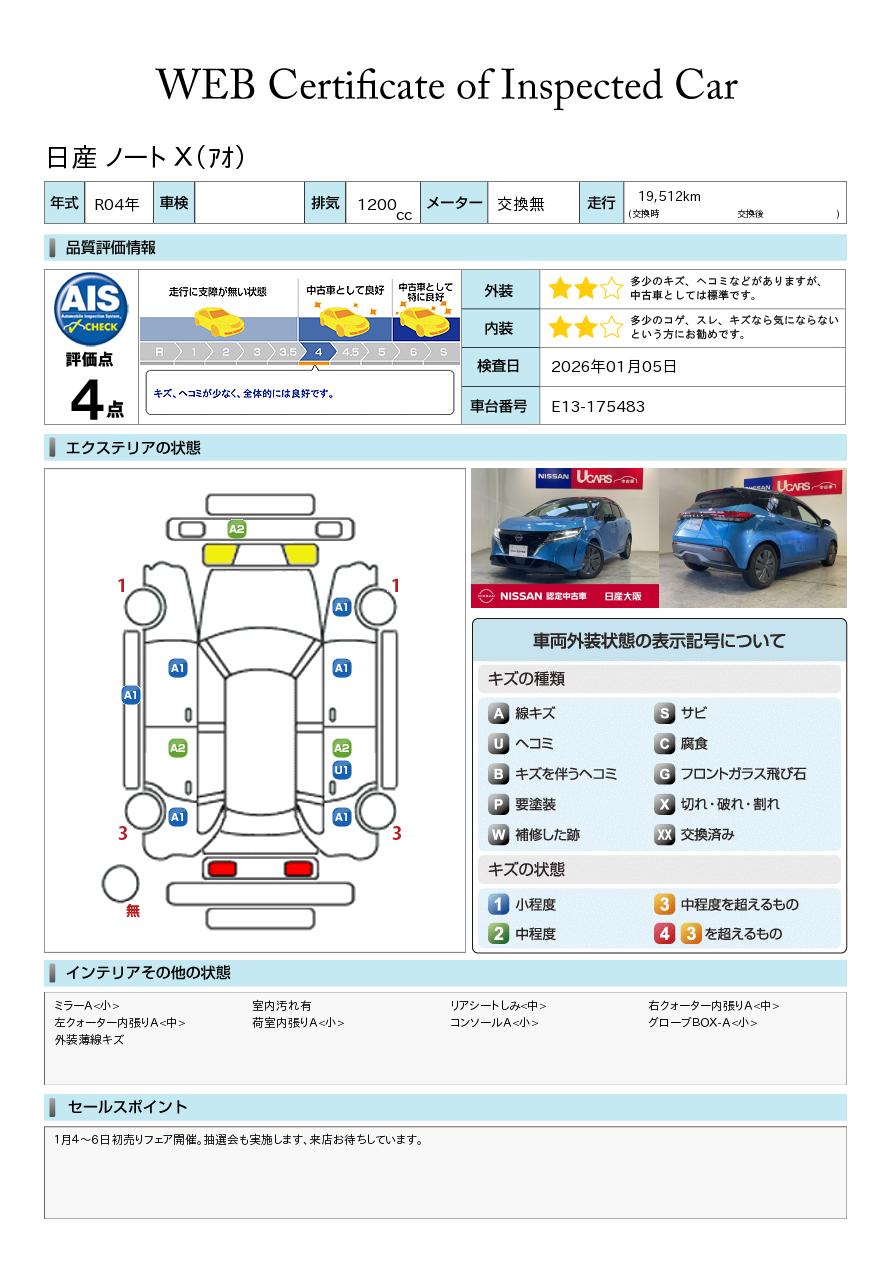 ノート 1200cc 1.2 X 試乗車アップ車両 元社用車