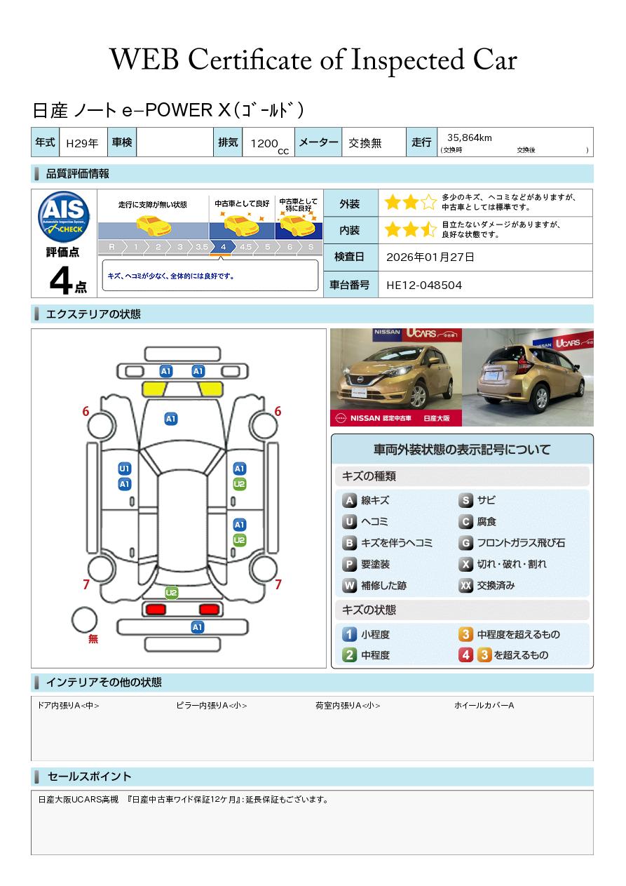 日産大阪UCARS高槻 『日産中古車ワイド保証12ケ月』:延長保証もございます。エマージェンシーブレーキ・LED・前後踏間違防止・アラウンドモニタ&ナビTV・ETC・前ドラレコ