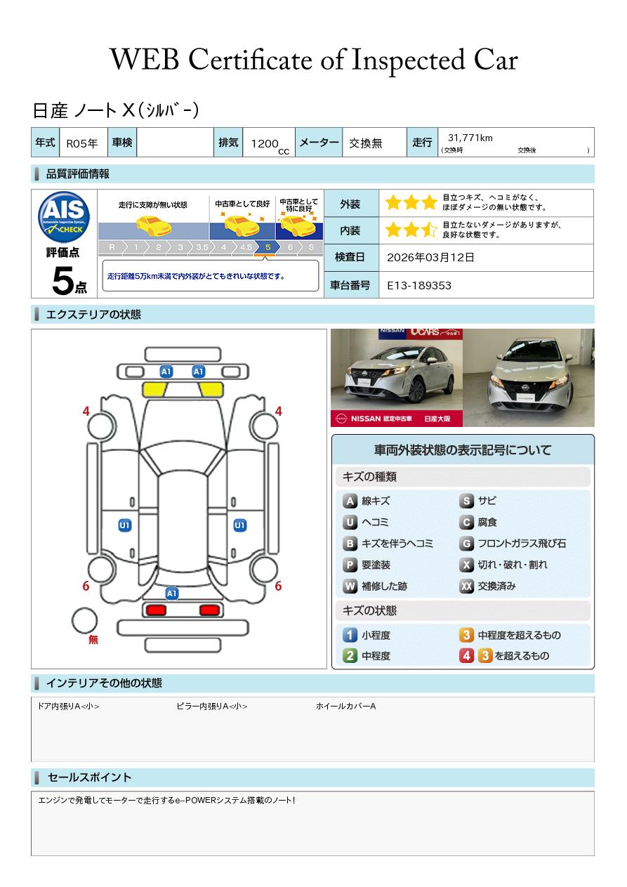 エンジンで発電してモーターで走行するe-POWERシステム搭載のノート!当店のお車はトラブル防止の為、一度のご来店をお願いしております。