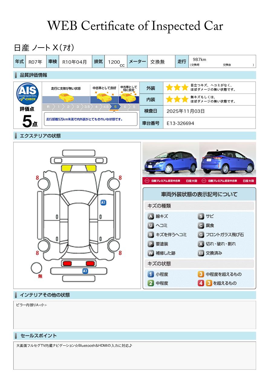 ノート 1200cc 1.2 X 試乗車アップ車両 元社用車
