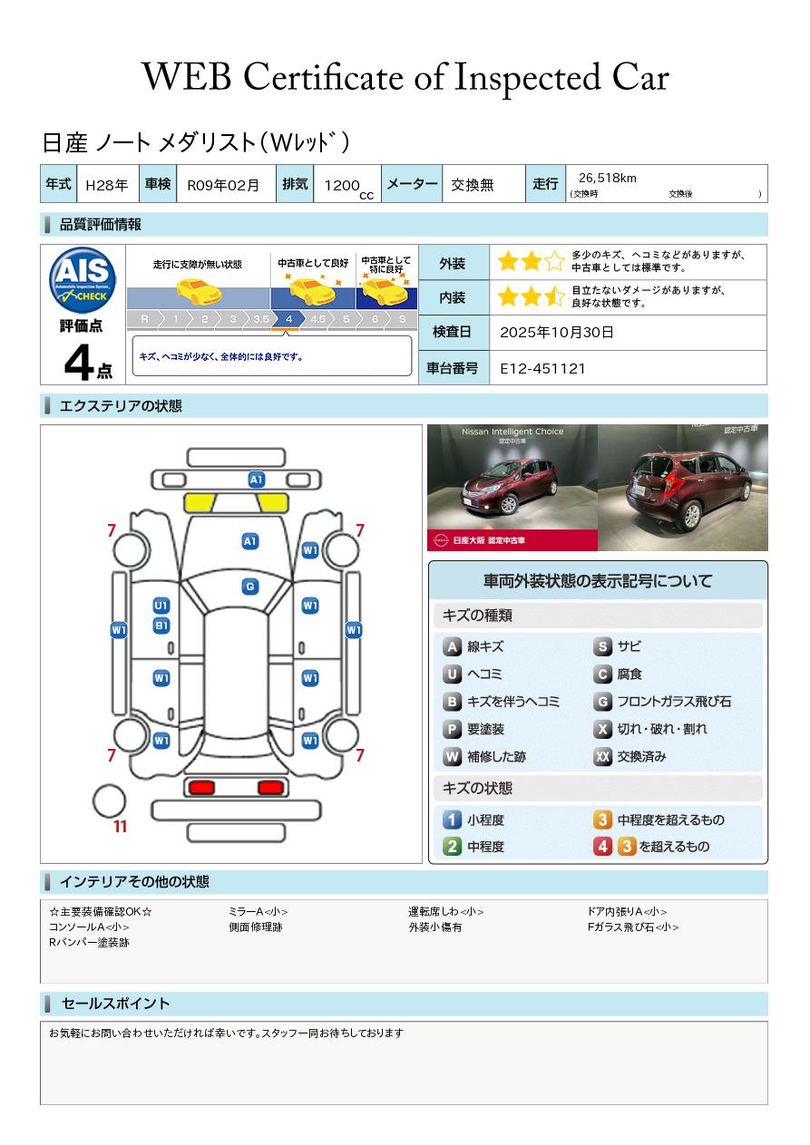 現状括弧書き内の年月まで車検有効期限が残っていますが、ご成約時に新しく車検を取り直します。なお取り直しの費用は車両価格に含まれています。