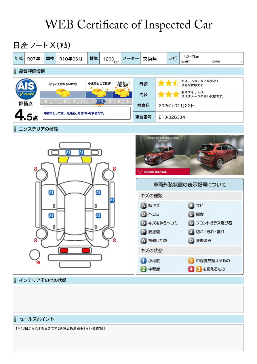 現状括弧書き内の年月まで車検有効期限が残っていますが、ご成約時に新しく車検を取り直します。なお取り直しの費用は車両価格に含まれています。