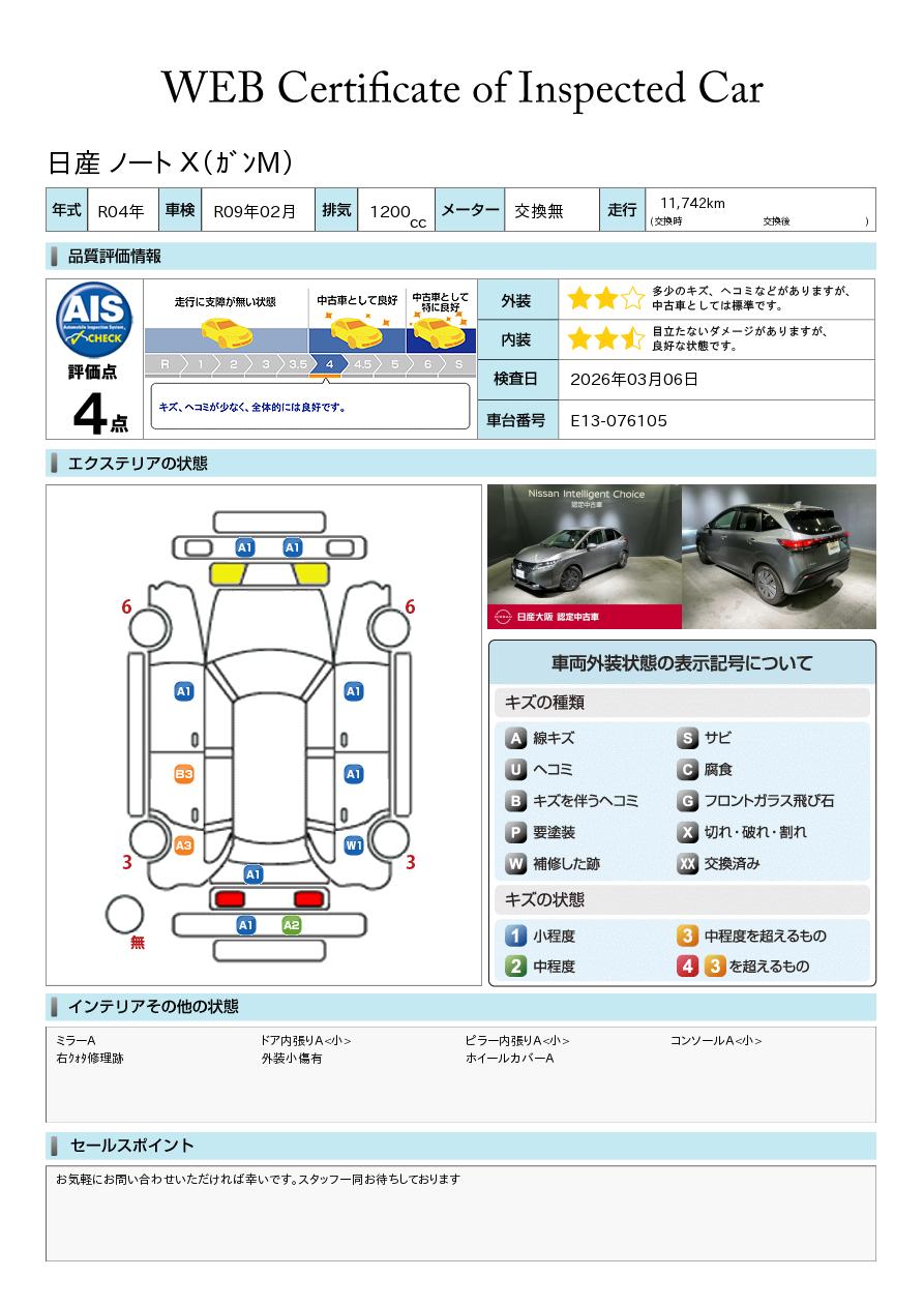 現状括弧書き内の年月まで車検有効期限が残っていますが、ご成約時に新しく車検を取り直します。なお取り直しの費用は車両価格に含まれています。