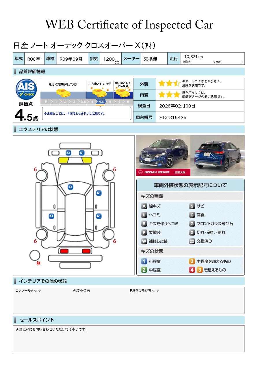 「車両状態証明書」は、査定協会監修のプロの検査員が公正かつ確かな基準で検査した”安心の証”です。