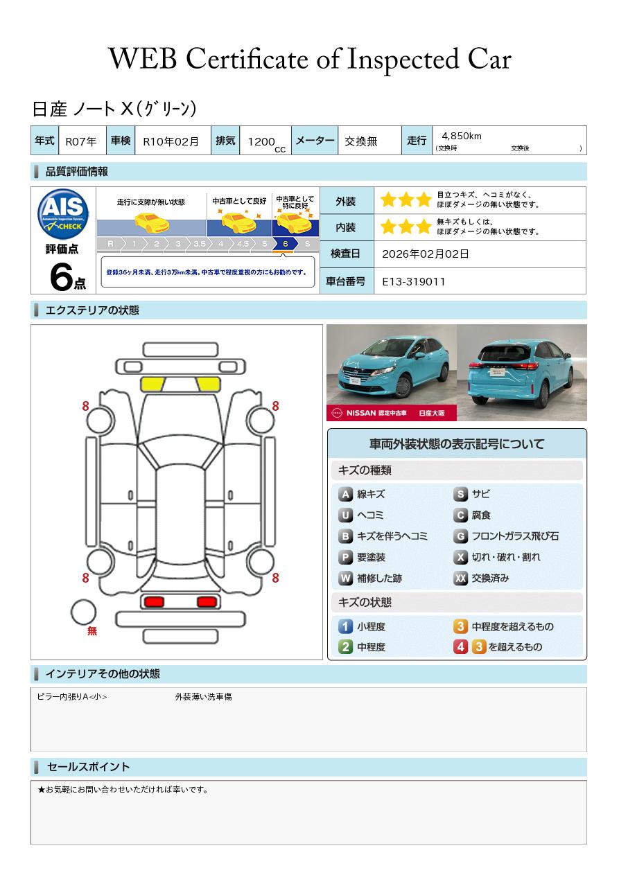 現状括弧書き内の年月まで車検有効期限が残っていますが、ご成約時に新しく車検を取り直します。なお取り直しの費用は車両価格に含まれています。
