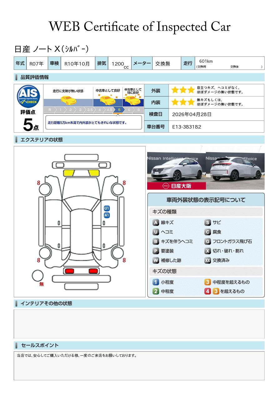 ノート 1200cc 1.2 X 全方位カメラ スマートルームミラー