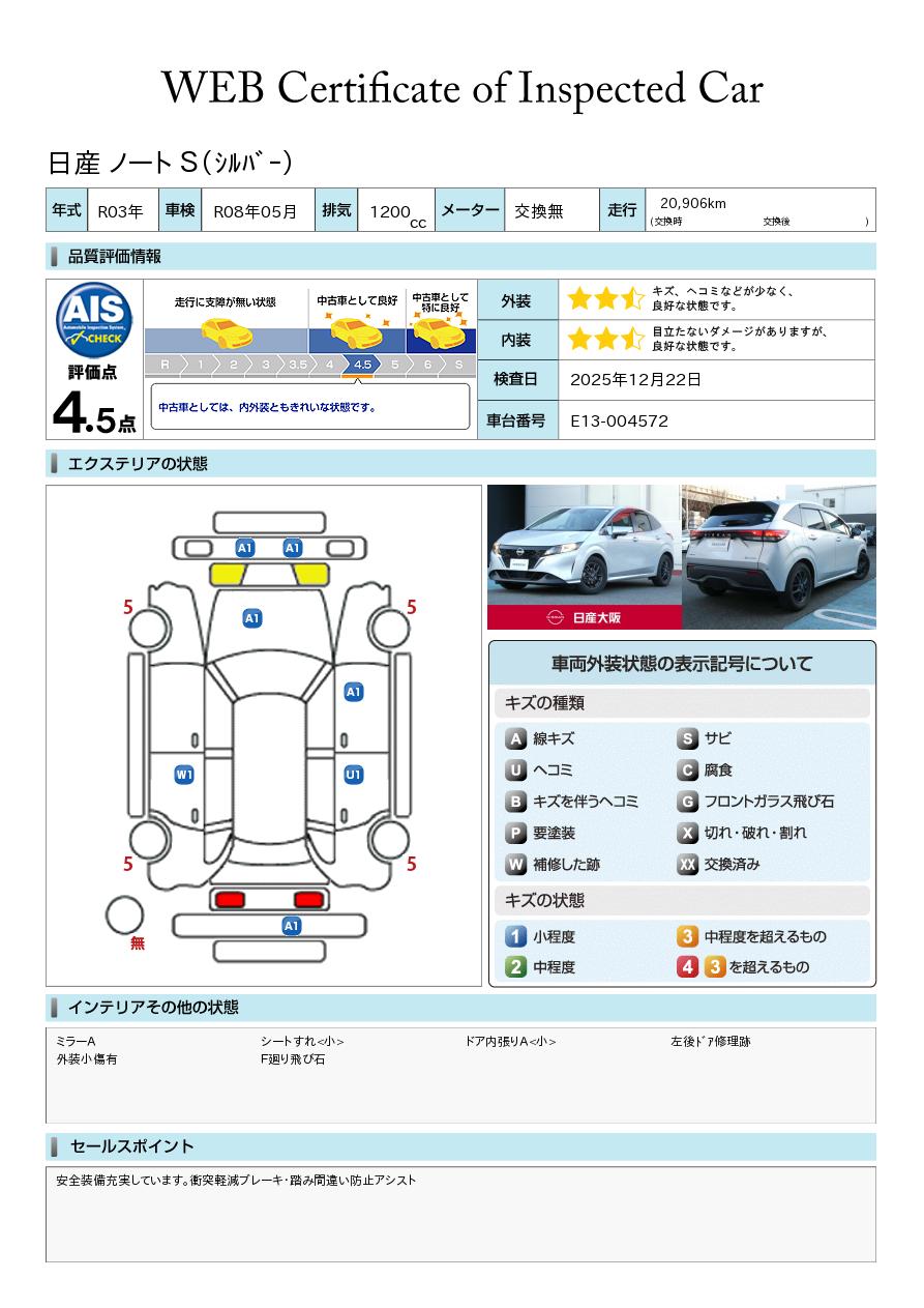 日産自動車認定の中古車販売店です。