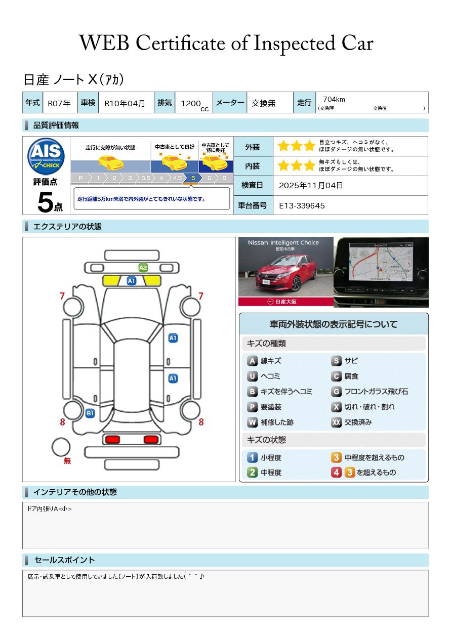展示・試乗車として使用していました【ノート】が入荷致しました(^^♪お支払い総額は大阪府内での基本お見積もりです。他府県登録も可能ですのでお気軽にお問い合わせください。