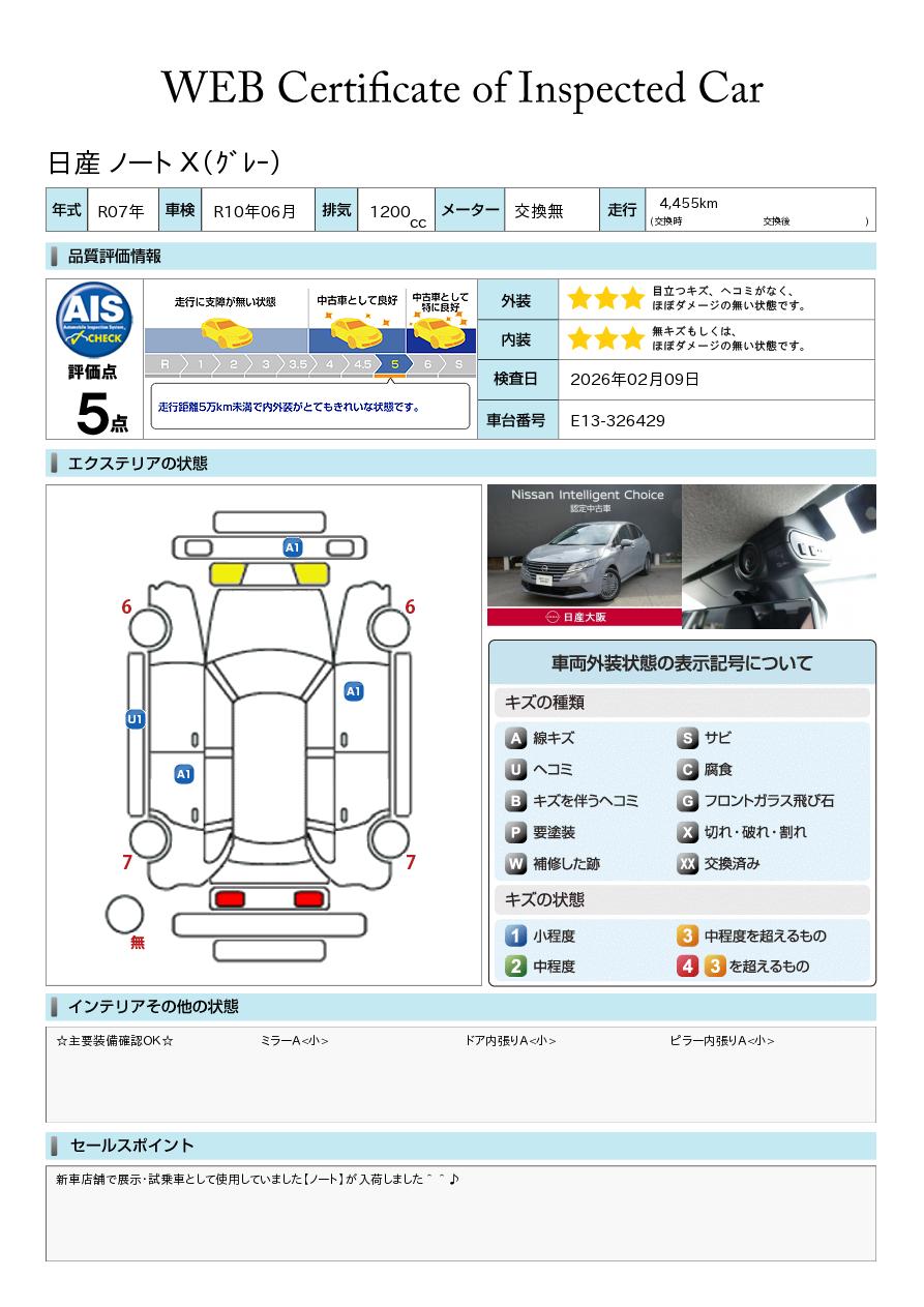 新車店舗で展示・試乗車として使用していました【ノート】が入荷しました^^♪お支払い総額は大阪府内での基本お見積もりです。他府県登録も可能ですのでお気軽にお問い合わせください。