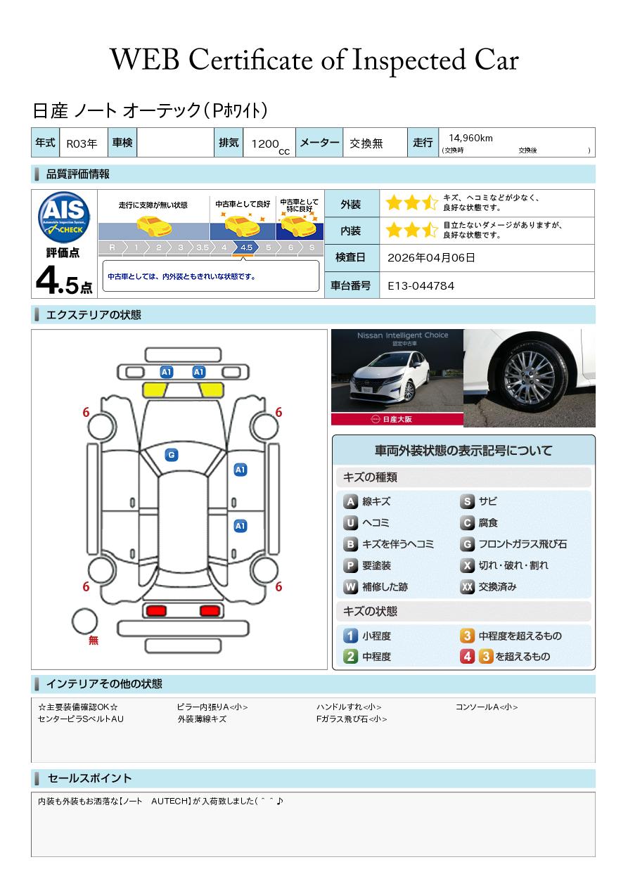 内装も外装もお洒落な【ノート AUTECH】が入荷致しました(^^♪お支払い総額は大阪府内での基本お見積もりです。他府県登録も可能ですのでお気軽にお問い合わせください。