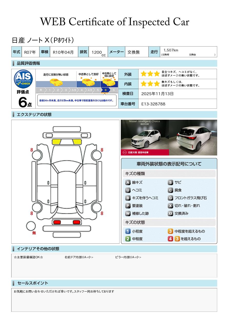 現状括弧書き内の年月まで車検有効期限が残っていますが、ご成約時に新しく車検を取り直します。なお取り直しの費用は車両価格に含まれています。