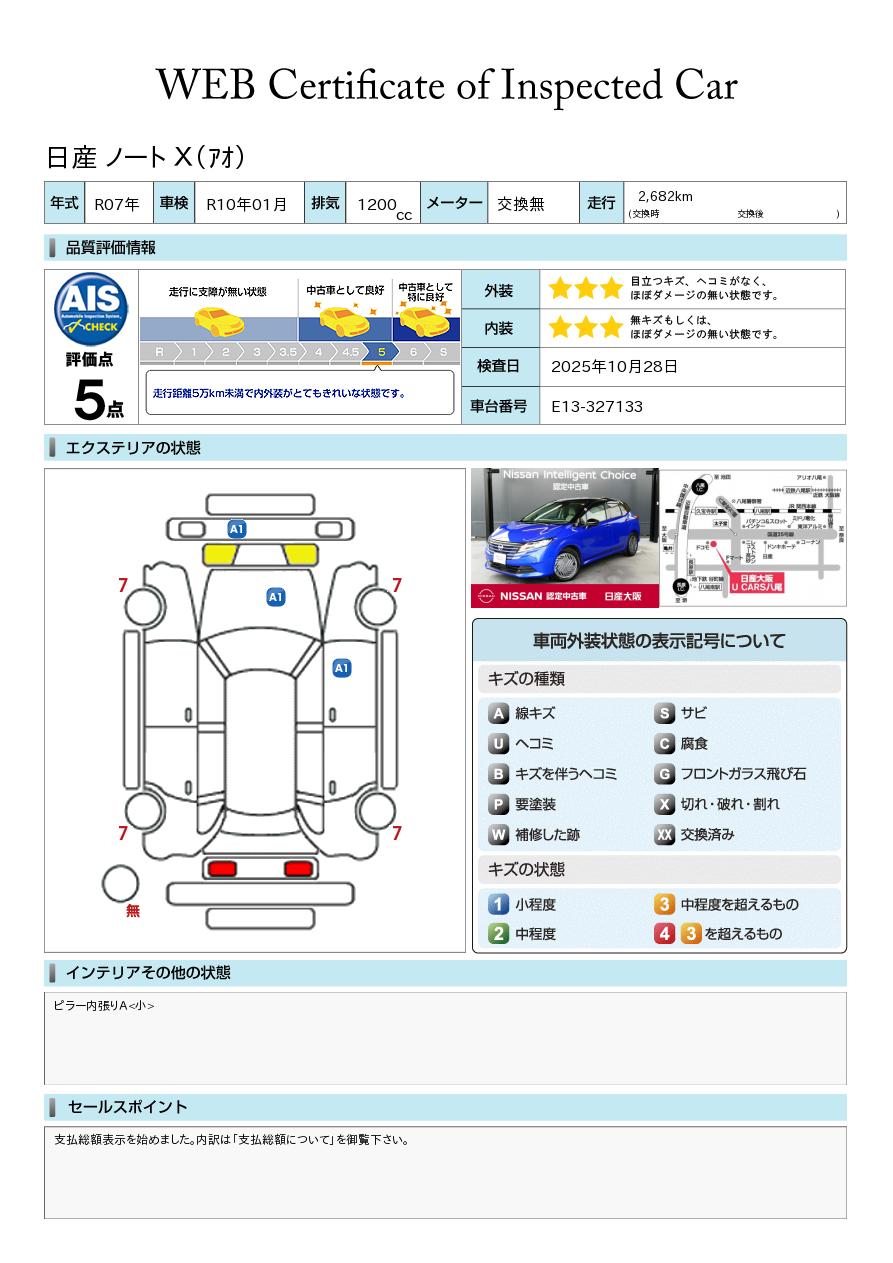ノート 1200cc 1.2 X 試乗車アップ車両 元社用車