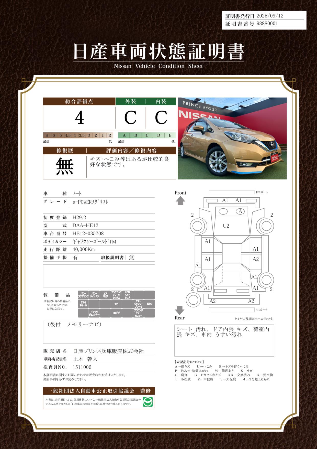 ノート 1200cc 1.2 e-POWER メダリスト 純正フルセグナビ エマブレ AVM ソナー
